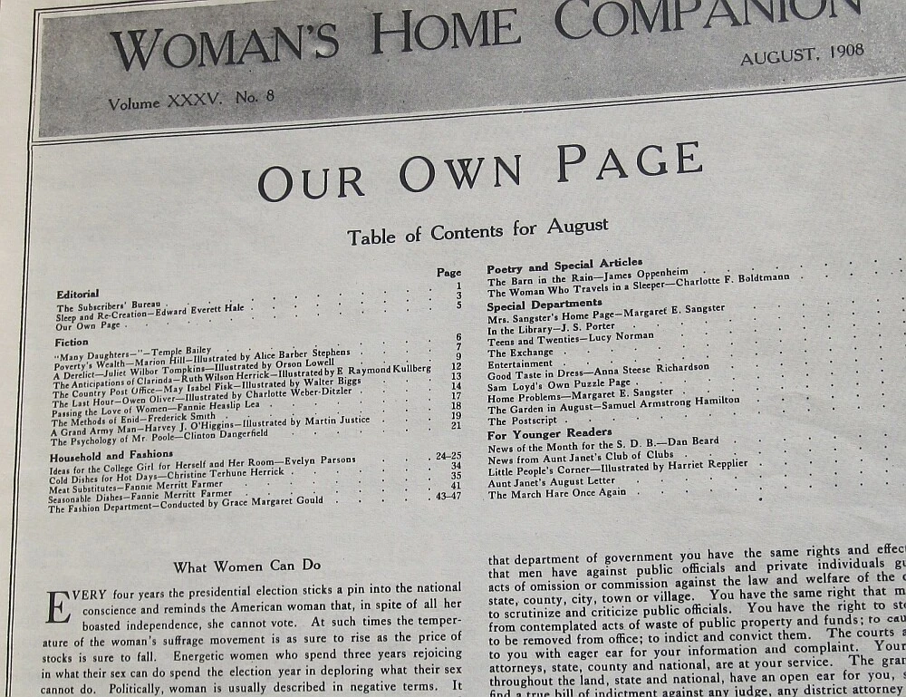 Country of Manufacture: United States gtin13: Does not apply Country/Region of Manufacture: United States Language: English Publisher: Crowell Publishing Topic: Women's Interest Publication Frequency: Monthly UPC: Does not apply Publication Name: Woman's Home Companion magazine Publication Month: August Publication Year: 1908