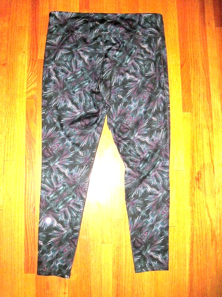Woman's Plus Size C9 Multi-Color Spandex Full Length Yoga Fitness Leggings Size 2XL-Tall New. Relaxed 35-inch elastic waist, 3 1/2-inch wide waistband, Slot pocket in waistband. 29-inch inseam. Made of 88% Polyester, 12% Spandex. Come from a pet free smoke free home.