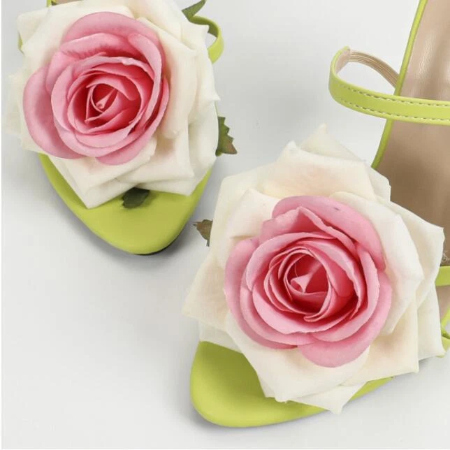 Women 2024 Fashion 3D Flower Open Toe High Heel Slingback Sandal Party Shoes