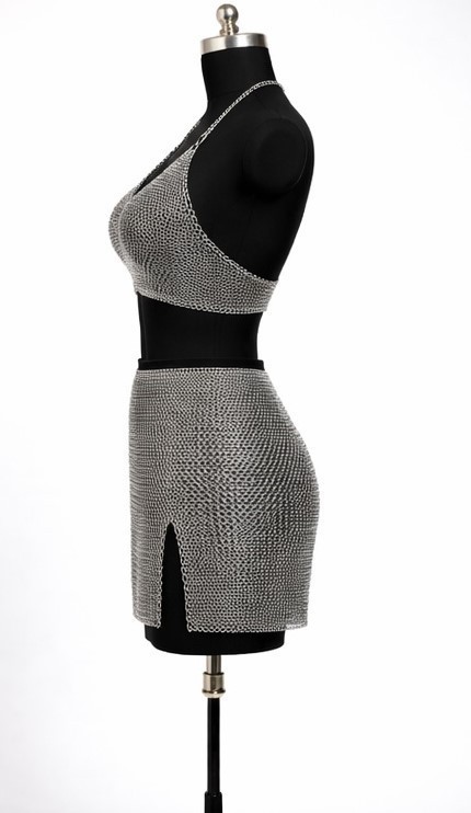 Women Aluminium Chainmail Bra & Skirt Set Medieval Metal Costume Armor