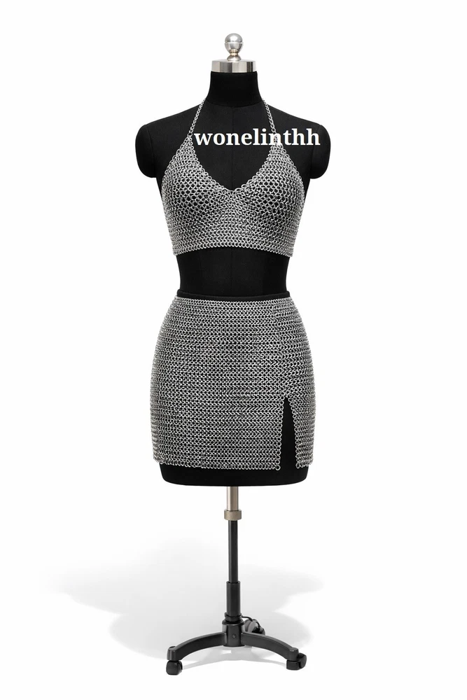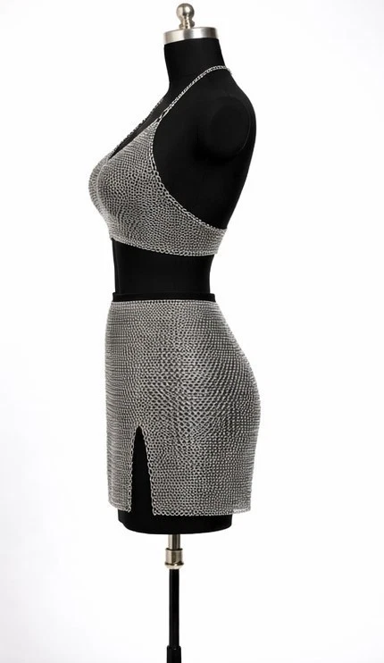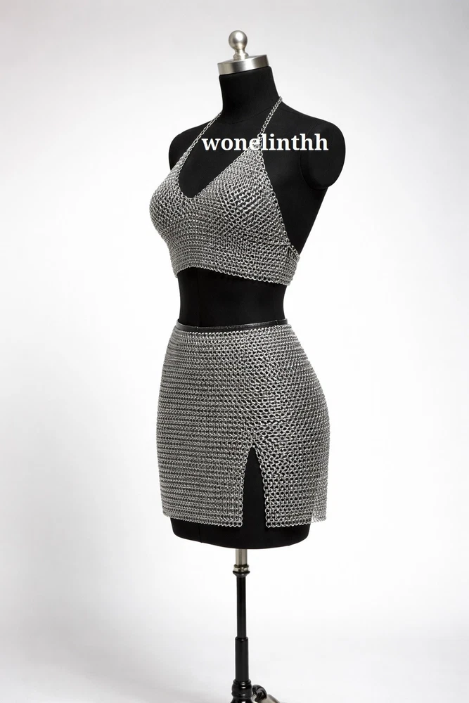 Women Aluminium Chainmail Bra & Skirt Set Medieval Metal Costume Armor Unleash your inner warrior with this stunning handmade aluminium chainmail bra & skirt set. Crafted for cosplay lovers, LARP players, and fantasy fans, this lightweight armor blends authentic medieval style with modern comfort. ⚔️ Key Features Handmade aluminium chainmail bra & skirt set Lightweight, strong & rust-resistant Comfort-fit flexible design Traditional medieval weave pattern Perfect for cosplay, LARP & festivals 🛡️ Material & Details Material Aluminium Chainmail Weave Style European 4-in-1 Finish Polished Metal Weight Lightweight Includes Chainmail Bra + Skirt 📏 Size & Custom Fit All sizes are custom-made for the perfect fit. Please provide: Bust Size Waist Size Hip Size Height (optional) Size Chart (Reference) Small Bust 30-32 | Waist 24-26 Medium Bust 34-36 | Waist 28-30 Large Bust 38-40 | Waist 32-34 Custom Made to your measurements 🎭 Perfect For Medieval & Viking Cosplay LARP & Fantasy Roleplay Renaissance Festivals EDM / Music Festivals Stage & Performance Costumes 🧼 Care Instructions Store dry & wipe with soft cloth Avoid harsh chemicals Keep away from saltwater ❓ FAQ Is it heavy? No, aluminium chainmail is lightweight & wearable for long durations. Is it adjustable? Yes, custom sizing ensures a comfortable fit. Does it rust? No, aluminium is rust-resistant. 📦 Returns & Support We accept returns for damaged or incorrect items. Custom-made items are non-returnable unless faulty. For sizing help or questions, message us anytime.