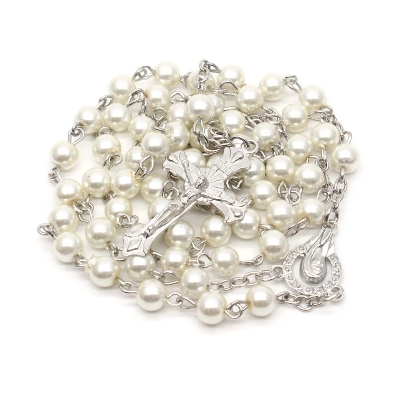 Women Crucifix Cross-Long Chain Amulet Necklace Religious Jewelry Features: The pattern of each bead is unique. It is not easy to peel off. The beads make this rosary-looks very beautiful and easy to praying. They could wear daily for the rosary necklace or the rearview mirro of your car, truck, or portable pocket for long driving or travel. This rosary will be bring you and your family Peace, Comfort, Strength and to keep-calm and feel safe in hearts. People bought this rosary used for Pray, Childrens first communion rosary, Baptism, Wedding Brithday Specifications: Glass, Alloy Color: White/ Blue/ Size:Approx.51-80cm/20.07-31.49" Package Includes: 1 Piece Necklace note: Please allow 1-2cm errors due to manual measurement,Please make sure that you do not mind before you order. Due to the difference between different monitors, the picture may not reflect the actual color of the item.