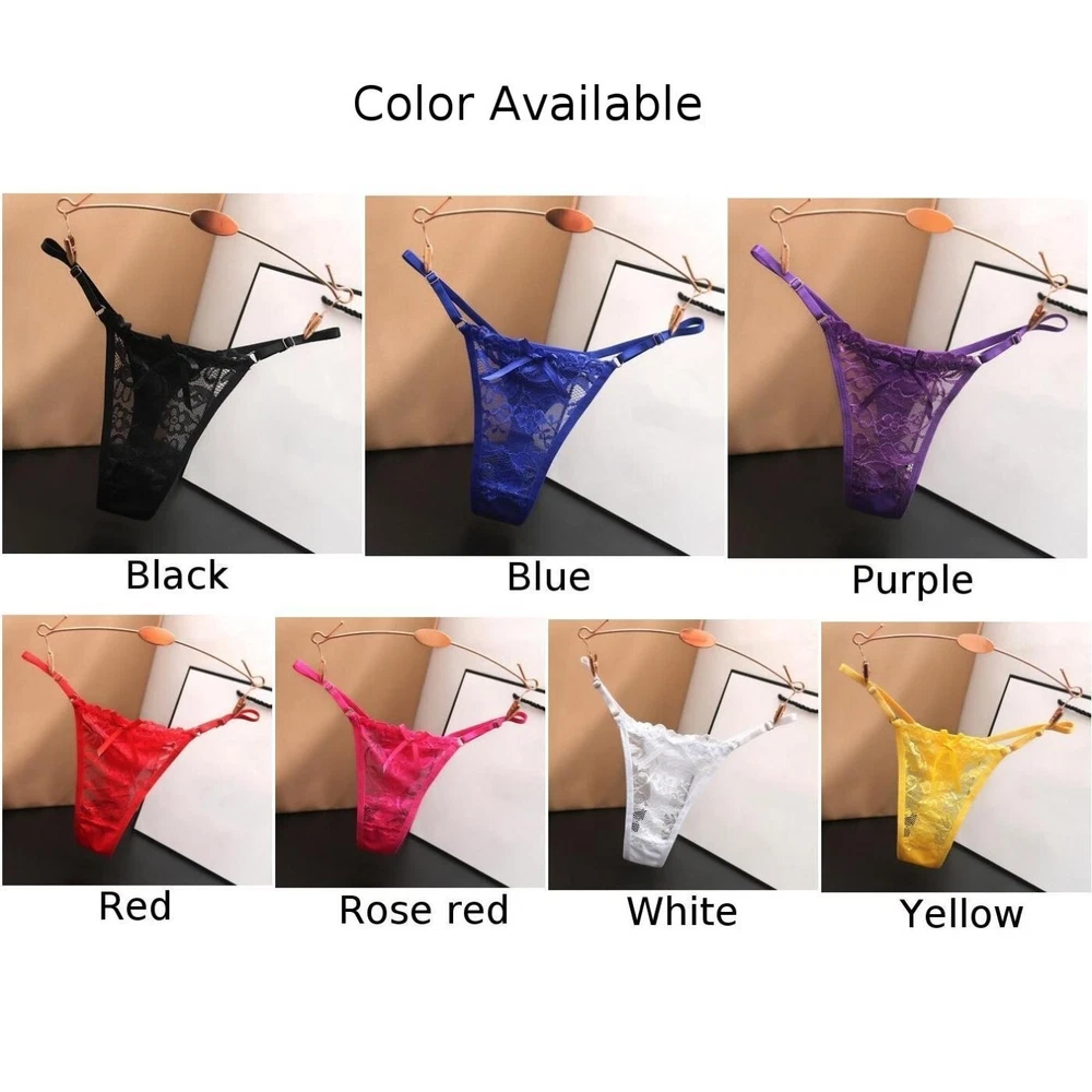 Women Elegant Lace Thongs Sexy Transparent Underpants for Any Occasion DESCRIPTION Details: *Tag Size: size ,Size reference provided below. Waist:58-80cm Weight 40-60kg * Item Fabric: Polyester * Item Color: Black,White,Red,Yellow,Blue,Rose red,Purple ( As pictures show ) * Item Features:Lace G-string Thongs ,Women Panties ,Sexy transparent Underwear ,Underpants, T Pants * Item Condition:Brand New * Item Description: 1) Applicable G ender: Female 2) Clothing Length : Regular 3) Elasticity: Slight Stre t ch 4) Pattern: S olid color 5) Style:Sexy 6) Suitable S eason:All season 7) Application:Vacation,Holiday, Daily * Package Contents: 1 * Thongs ( Other items not included ) How to choose proper size? 1) Use similar garment to compare with the sizes 2) Choose larger sizes if your sizes are same as the flat measurement size chart Notes: 1, The real color of the item may be slightly different from the pictures shown on website caused by many factors such as brightness of your monitor and light brightness. 2, Please allow slight (±2Cm)manual measurement deviation for the data. POLICES Shipping Payment WARRANTY We only ship to confirmed ebay Order addresses. Please comfirm that your Order address is in line with your shipping address. Please kindly note that the c ombined shipping is not provided because the shipping fee is calculated by weight. Also, the each additional item means exactly the the same color and size. It takes about 7 -15 working days to US; about 10-30 working days to other countries. Transit time may be a little delayed because of the bad weather and customs inspection . If you do not receive your item within 30 working days since payment finished, please contact us immediately for further assistance. Payment must be completed within 5 days. If you have any problems about payment, please contact us via ebay message. We strive for 100% customer satisfaction! Positive Feedback is very important to us. If you have any questions, p lease feel free to contact us via "Ask seller a question" . We will reply your email within 24 working hours.