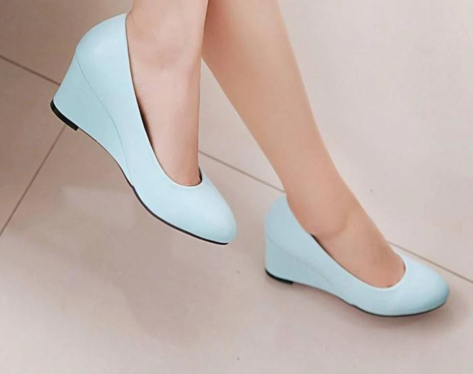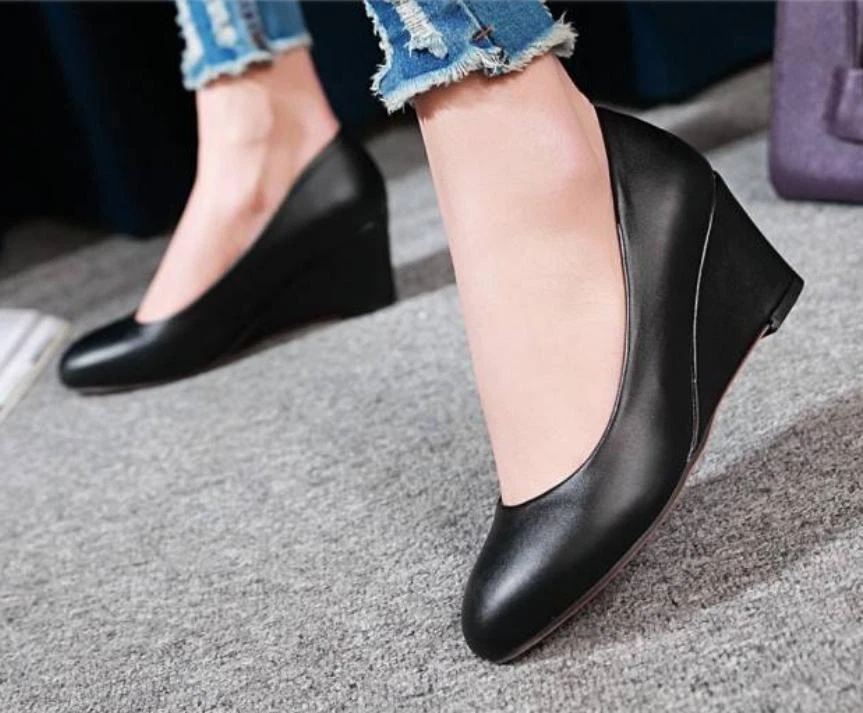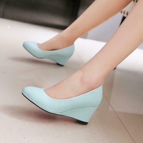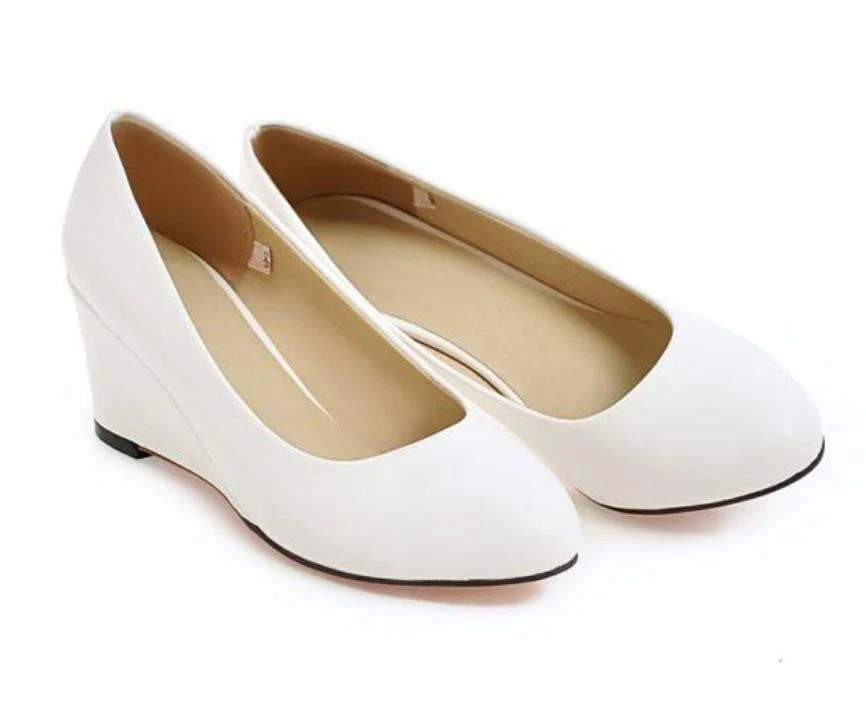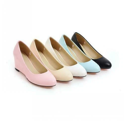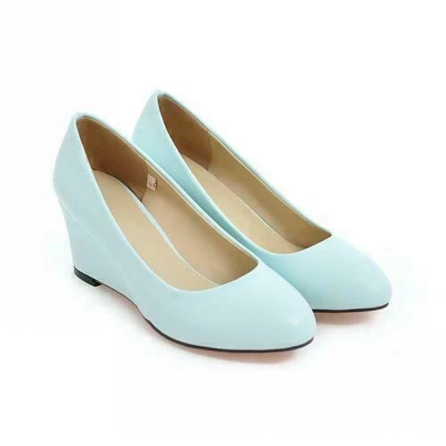 Women Fashion Wedge Heel Pumps Faux Leather Casual Office Dress Shoes
