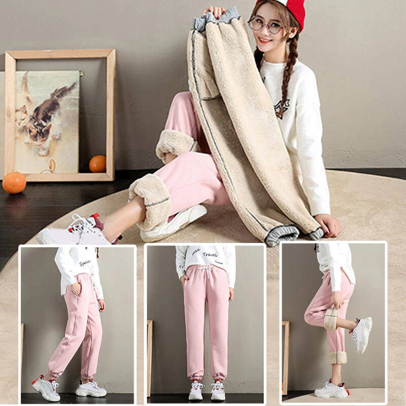 Women Fleece Lined Trousers Long Warm Jogging Pants Thick Elastic Waist Bottoms