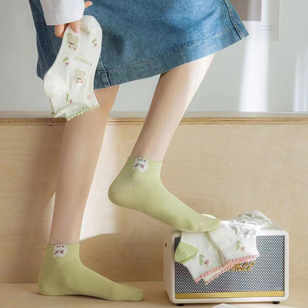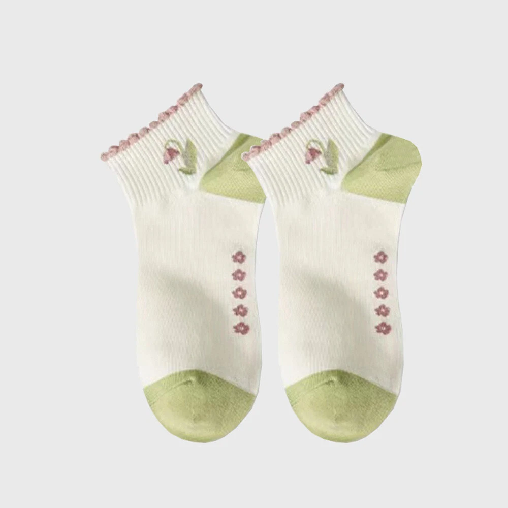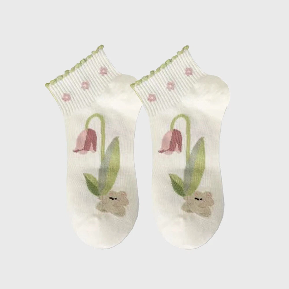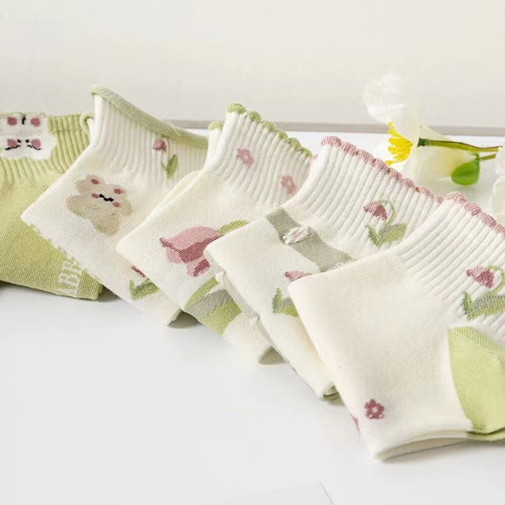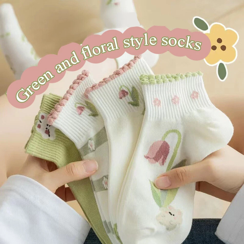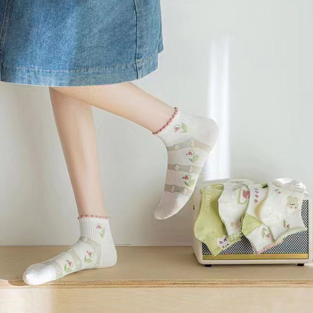 Women Floral Design Short Socks Fashion Versatile Lace Socks Comfortable wi