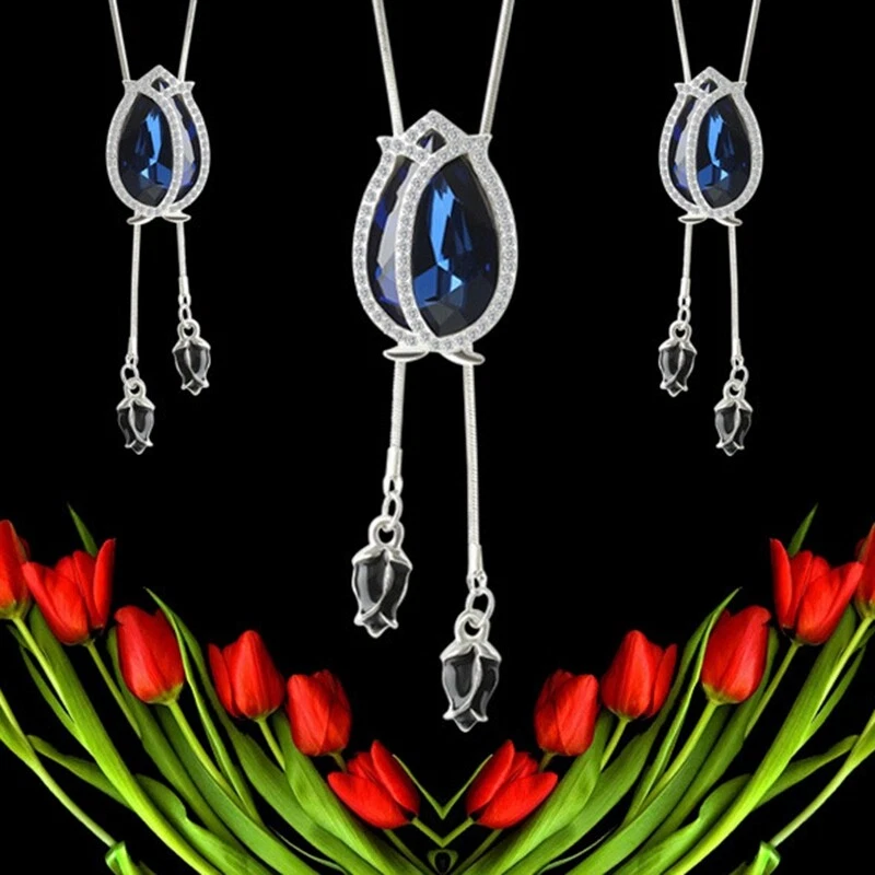 Women Flower Long Adjustable Chain Pendant Sweater Necklace( crystal) J7I62545