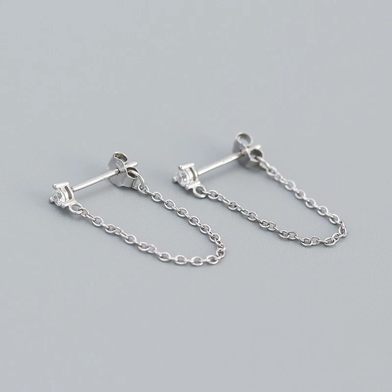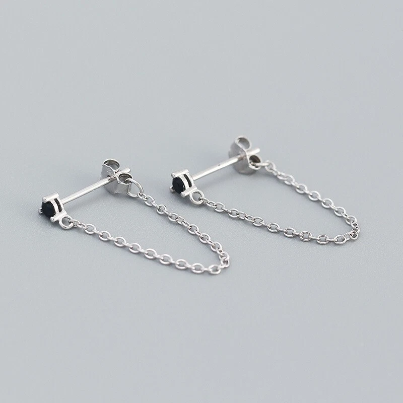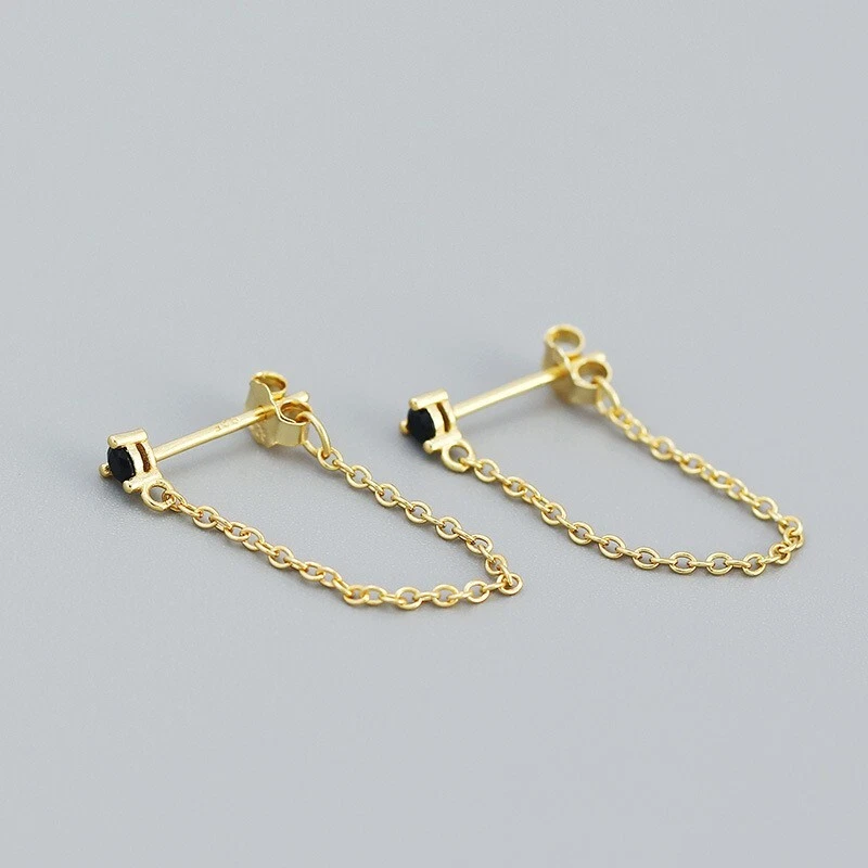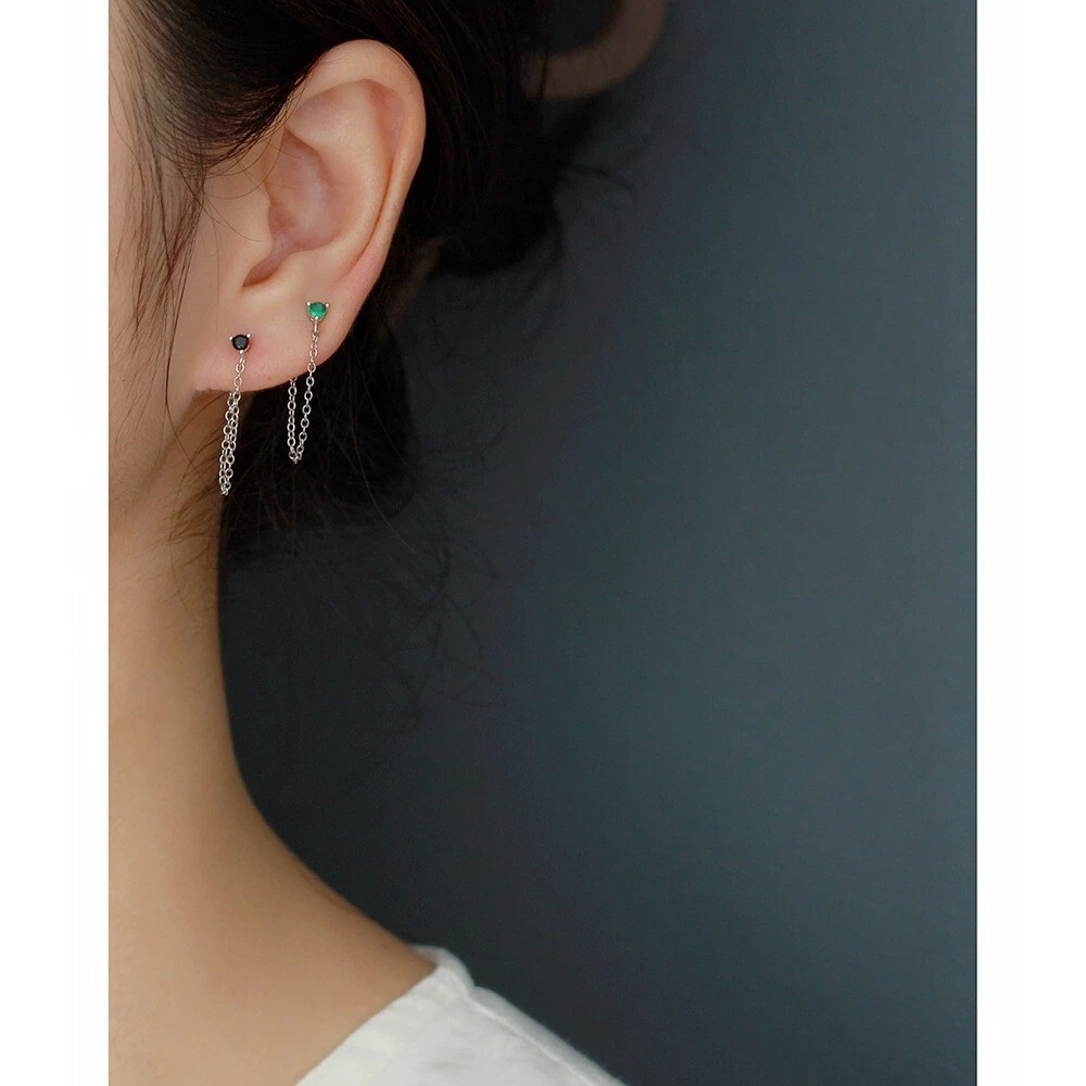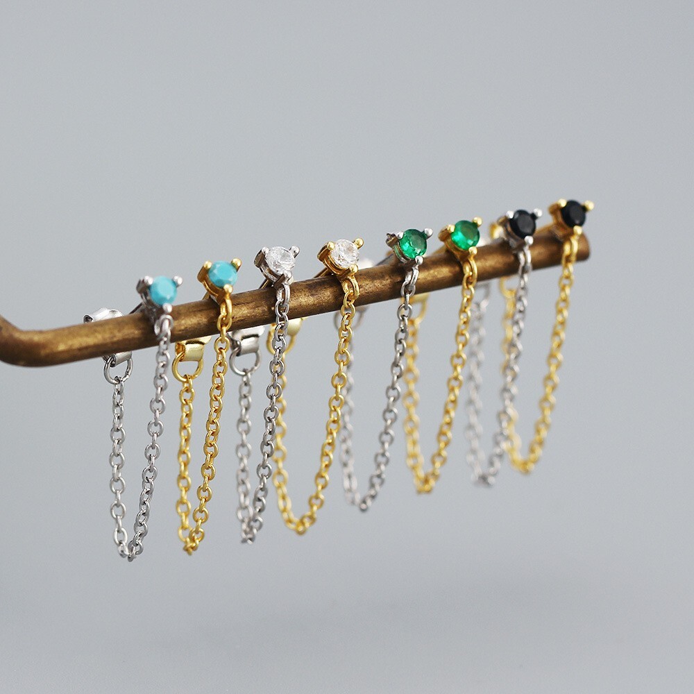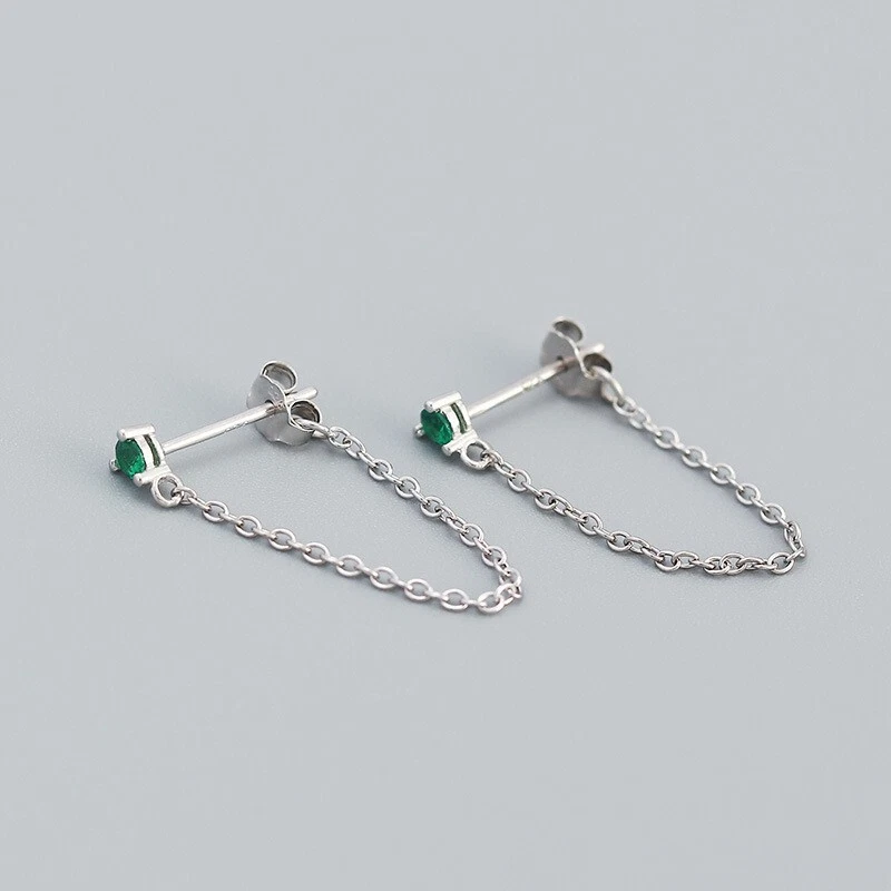 Adorable Round Shaped studs for everyone! Great gift for self rewarding or for your loved one, family, friends. CZ chain earrings, lightweight and easy to wear. This dangle Earrings are made of 18k gold plated S925 Sterling Silver. So they are waterproof, nickel-free, lead-free, cadmium-free and hypoallergenic, which will not turn your skin green or cause anaphylactic reaction. --------------------------------- DETAILS - CZ Part Size: 3.5x3 mm - Chain length: approx. 40mm - Material: Titanium, Gold Plated - Hypoallergenic: Yes - Color: Blue/Green/Black/White - Finish: Gold/Silver --------------------------------- CARE - Please avoid exposing your jewelry to water. - Keep them away from any oils, lotions or perfumes. - Remove before working out and at bedtime. --------------------------------- NOTE - The earrings are sold in pairs. - If you have any questions, please contact me at any time.