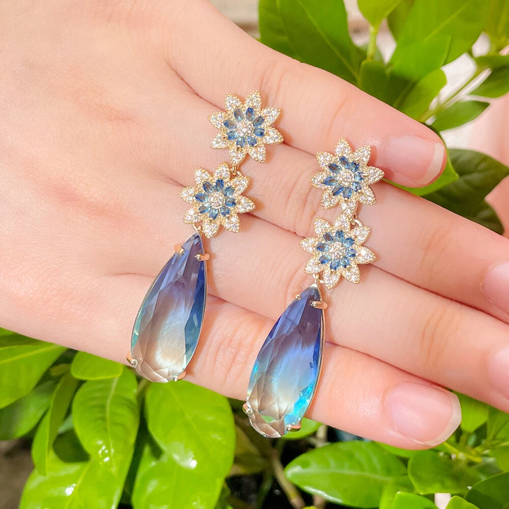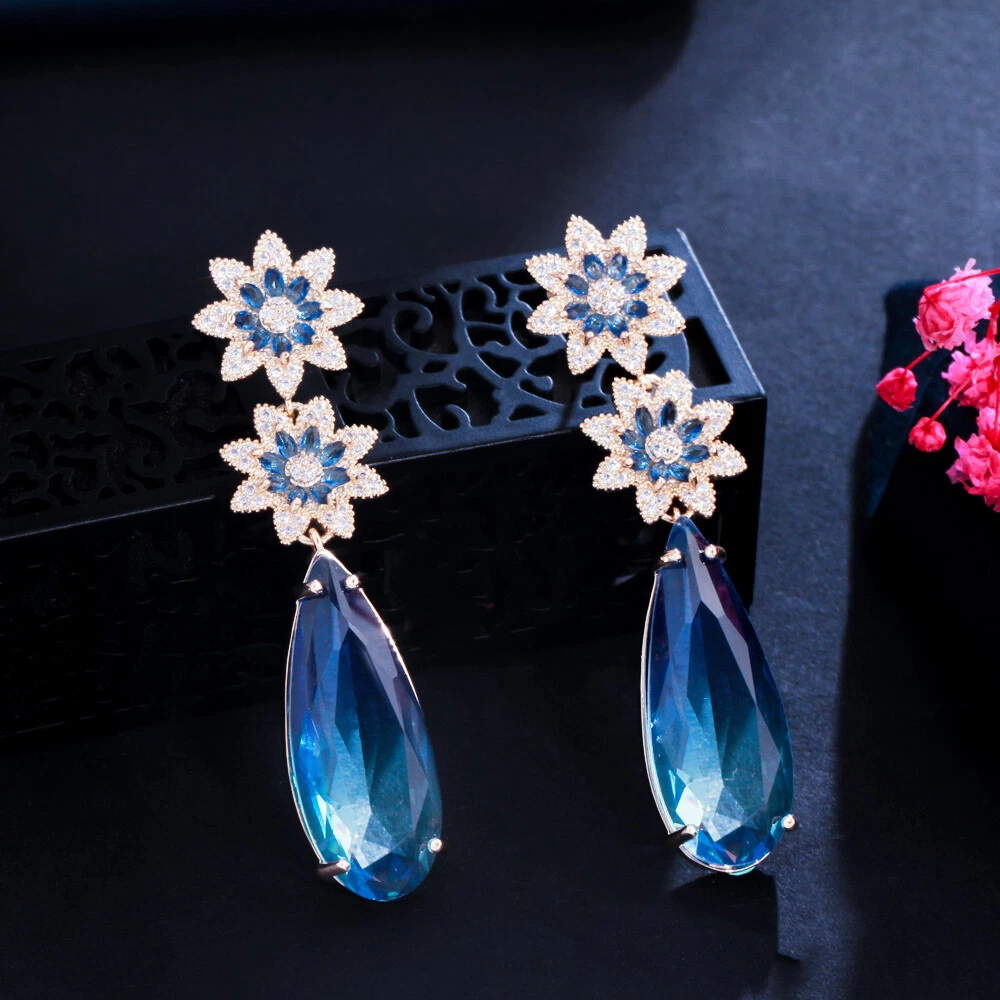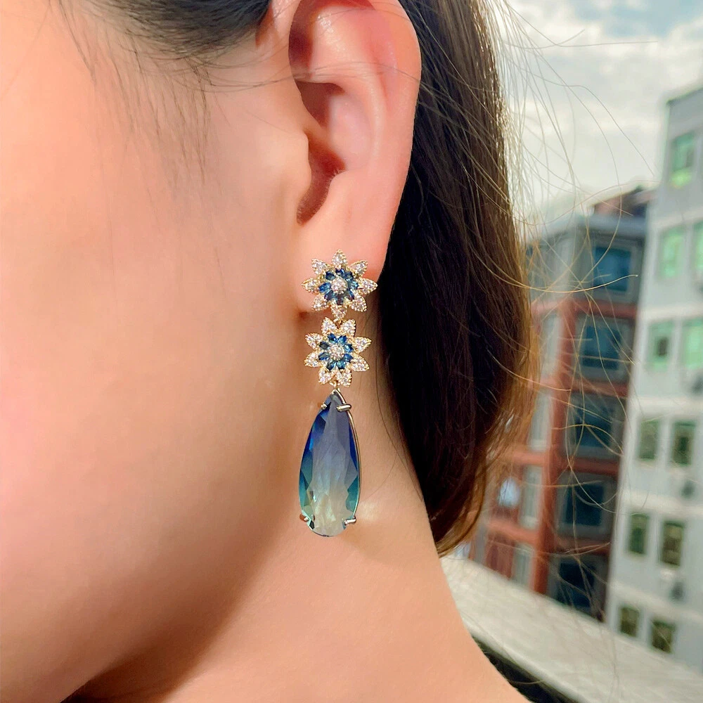 Women Gold Plated Flower Long Drop Earrings Blue Zircon Crystal Wedding Jewelry There’s an old saying that: Jewelry is woman’s best friend. And one appropriate luxury jewelry helps to spice up your charm and beauty. And here’s the reason why you choose us: ★ We adopts high-grade Cubic Zirconia, which displays pure and fascinating color; ★ All our items are Elaborate, Gold Plated (white gold plated/yellow gold plated/black gold plated), by which the texture is smooth and with fancy look, and will be appropriate for so many occasions; ★ Our items are with Exquisite Design, which shows your excellent taste, and could catch people’s attention easily. ★ Ideal gift for mother, wife, girlfriend, daughters, brides, bridesmaids, ect. Specification Type: Dangle/Drop Earrings Stone Material: Cubic Zirconia Base Metal Material: Brass Metal Material: Gold Plated Shape: Flower Color: Blue Suitable Occasion: Daily, Holidays, Party, Engagement, Wedding, Anniversary, Valentine’s Day, Carnival, Performance, ect. Package Includes 1 Pair of CZ Drop Earrings Please note: *Please bear in mind that there might be 1~2cm difference due to manual measurement. *Our digital images are as accurate as possible. However, different monitors may cause colors to vary slightly. *We offer after-sale service, if there is any item problem, please feel free to contact us via eBay message first, your kind understanding is much appreciated. About Us Payment Shipping Returns Contact us About Us Topjewel33 is a newly-established online store which dedicates to provide excellent luxury jewelry products, such as earrings, rings, necklaces, bracelets, brooches, hair accessories, and high grade jewelry sets. We target worldwide market, and we strive for offering you unbeatable low price and satisfied customer service. Payment We accept PayPal payment only. Payment must be received within 7 days from the date of purchase. Shipping We do hope all our customers could receive the order asap, so normally, the order will be sent out within 2 working days. And as the delivery is handled by the third party, sorry that we could not guarantee which date you could receive the package. And sometimes the delivery might be a little bit delay, especially in high volume or holiday seasons. However, please don’t worry and feel free to contact us via eBay message, and we will do our best to help. And we sincerely apologize for any inconvenience may cause. Sometimes custom tax might be required, and we are afraid that it will be covered by the buyers, thank you for kind understanding. Returns We provide 30 days money back return policy. And if you have any problem with the item, please make sure the item is in the original package and feel free to contact us via eBay message first, thank you for kind understanding and cooperation. Contact us We offer customer service, if you have any problem with the item before/during/after the purchase, please feel free to contact us via eBay message, and we will get back to you asap. Thank you for your kind patience.