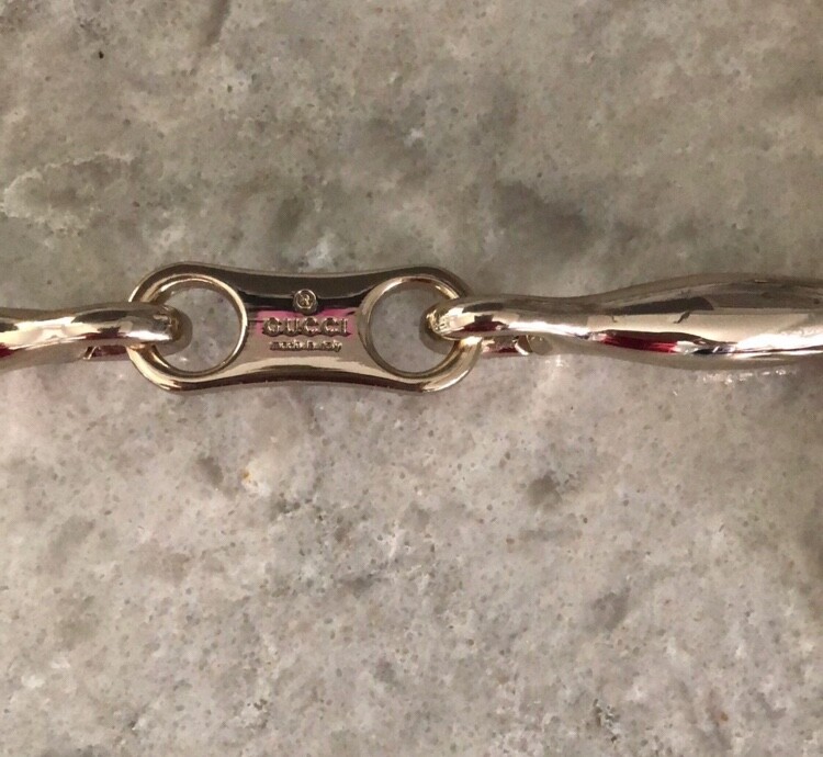 Accentuate your style with this exquisite Women's Gucci Horsebit Belt Buckle. Crafted in luxurious gold-tone metal, this iconic piece from Gucci features their signature horsebit design for a touch of elegance and sophistication. Perfect for adding a touch of glamour to any outfit, this belt buckle is a must-have accessory for fashion-forward individuals.Made for the modern woman who appreciates quality and luxury, this Gucci belt buckle is the perfect addition to your accessory collection. Whether paired with jeans for a casual look or worn with a chic dress, this versatile piece is sure to elevate your ensemble with its timeless design and impeccable craftsmanship. Add a touch of Gucci's iconic style to your wardrobe with this stunning horsebit belt buckle. ****Buckle Only****