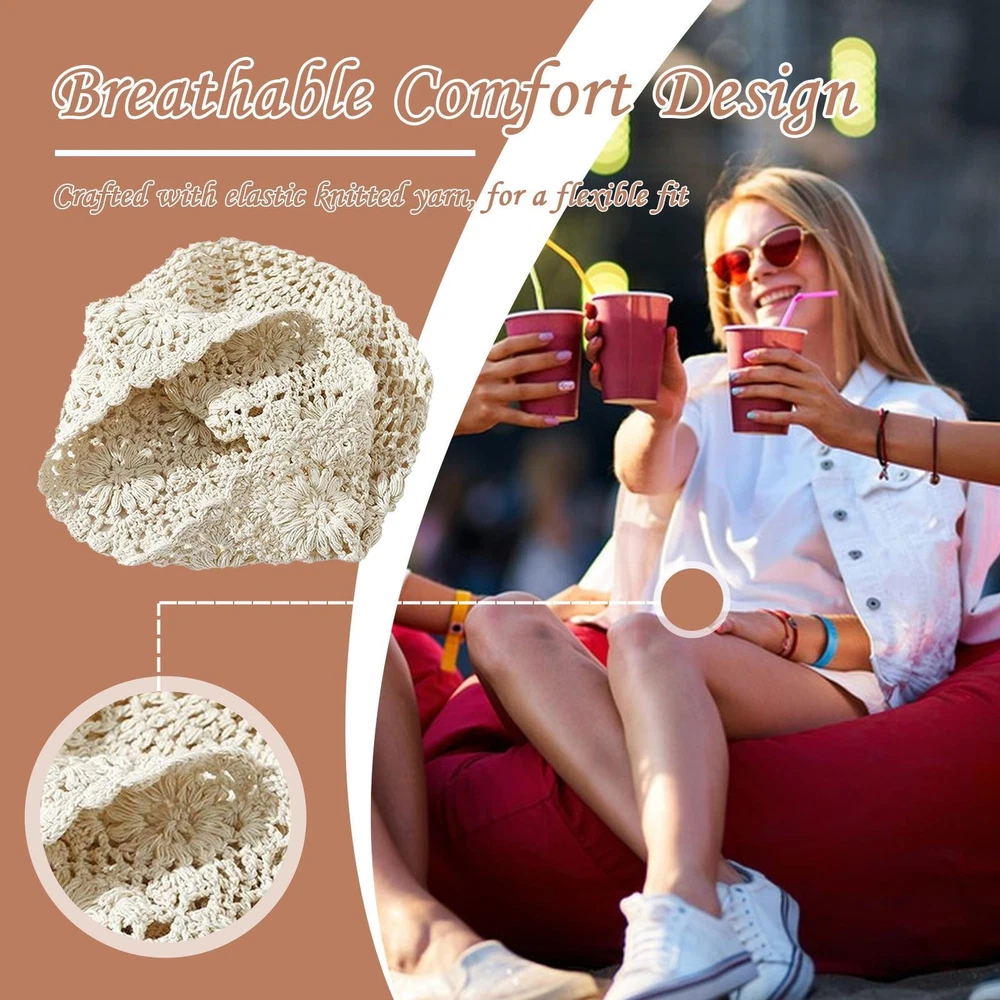 Women Lady Chic Fashion Boho Cotton Flower Lace Crochet Knit Beanie Hats Cap Bullet Points: Breathable Comfort Design: Crafted to ensure sweat-wicking and skin-friendly wear, the knit hat gives long-lasting comfort with no stuffiness even during extended use, promoting airflow for a fresh feel all day Flexible Fit: Designed using elastic knitted yarn, this hat ensures a snug yet adaptable fit, catering to diverse head sizes without compromising for style or ease of use Exquisite Craftsmanship: Fine workmanship highlights the hand-crocheted, hollow floral pattern, offering clear texture and rich layers to enhance elegance Enhance Outfit Texture: Knit hats for women easily improve the texture of outfit while adding a retro literary style, perfect for fashion-forward designs that elevate everyday looks with timeless charm and versatility Multiple Uses: Enhance your travel, leisure, commuting, photography, and special parties. Widely used knit hats combine fashion and utility to match a variety of lifestyle needs Perfect for spring and summer days, they offer an elastic fit that ensures all-day comfort. Whether you're heading to the beach or traveling, these knitted hats for ladies provide both versatility and timeless appeal. Specifications: Material: cotton, acrylic fiber Product size: Hat circumference: 56-60cm/22.05-23.62 inches Hat depth: about 24cm/9.45 inches Hat width: about 25cm/9.84 inches Weight: 80g Product List: 1 * Crochet Hat Note: Due to different lighting and screen settings, the item color may be slightly different from the picture. Due to different manual measurements, please allow a 1-2cm difference in size. 1.You can make a Credit payment via Paypal.Paypal will let you use MasterCard,Visa to pay. 2.Payment should be completed within 5 days after auction closed, or unpaid dispute will be filed for an closing auction.An unpaid case will be filled after 4 days. ● We strive for 100% customer satisfaction ! ● Positive Feedback is very important to us. ● We hope that you contact us immediately BEFORE you give us neutral or negative feedback, so that we can satisfactorily address your concerns. ● We promise to offer the lowest price and high quality produce. Dear buyers : ● Welcome to my store ! ● Your satisfaction is our top goal,we appreciate your patronizing. ● If you have any questions, please contact us before leave negative or neutral feedback, we will try our best to solve the issue to your satisfaction, thanks ! ● If you are satisfied with our service, please rate the details of the transaction (Detailed Seller Ratings) on eBay. ● Please always talk to us via ebay Message. ● We appreciate your business and look forward to growing our e-Bay sales with satisfied customers.