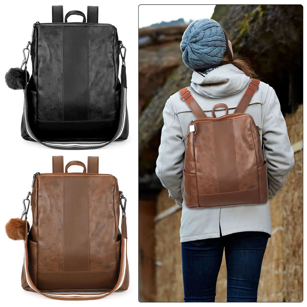 Women Leather Backpack Travel Anti-theft Shoulder Bag Lady Purse Satchel Handbag