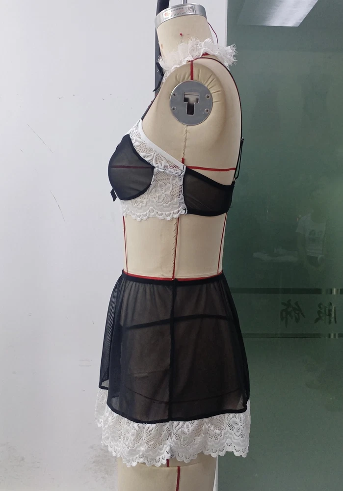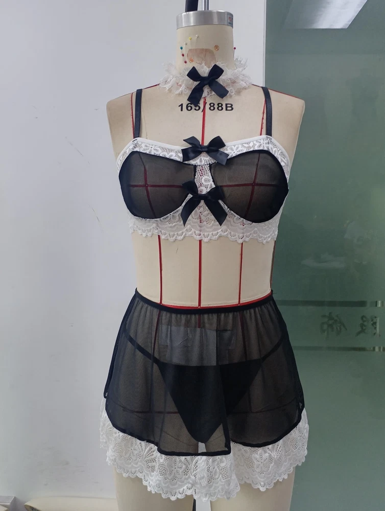Women Lingerie Sexy Maid Cosplay Costume Role Play Bra Skirt Apron Set Nightwear