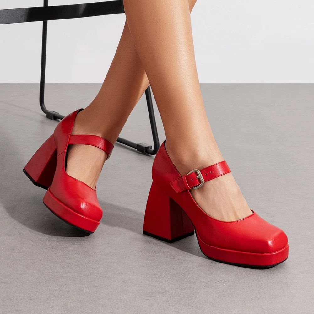 Shoe Width: M Platform Height: 0.9 inches Style: Pump Department: Women Type: Heel Season: Fall, Spring, Summer, Winter Toe Shape: Square Toe Closure: Buckle Heel Height: 3.7 inches US Shoe Size: US 6-11 应用PLG: 应用 Occasion: Casual, Party/Cocktail, Travel, Wedding Brand: Unbranded Heel Style: Block Upper Material: Faux Leather