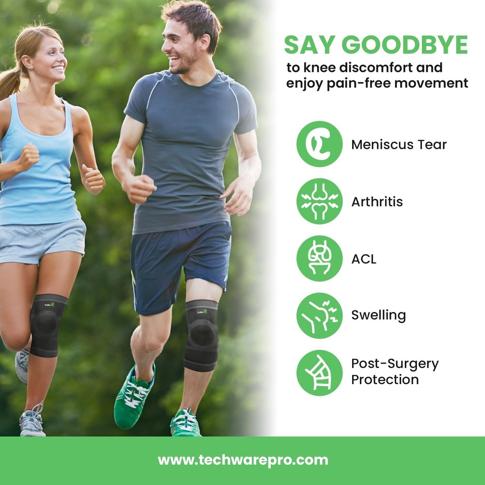 Makers of Quality Supports We applied 3D TECHNOLOGY to design a better KNEE COMPRESSION SLEEVE that provides the BEST FIT, SUPPORT AND COMFORT. * KNEE SLEEVE THAT OFFERS COMPRESSION AND SUPPORT - with 2 flexible spring stabilizers and a patella gel pad. * MAXIMUM COMFORT AND FLEXIBILITY - high quality 4 way stretch breathable blended fabric for everyday use or sports activities. Does not restrict movement. * START HEALING AND SPEED UP RECOVERY - with therapeutic warmth that reduces inflammation, promotes circulation and healing. * SLEEVE STAYS IN PLACE DURING MOVEMENT - non slip silicon strips that will keep the sleeve in place during all kinds of activities. * OPTIMIZED KNEE MOVEMENT - ergonomically designed to promote correct knee movement as to prevent injury. * PROFESSIONAL GRADE FABRIC - quality material that is durable, moisture wicking and made to last. * EASY TO FIT - Choose from 3 SIZES. Measure around thigh 5.5" above mid point of kneecap. Sold as a single unit - one knee sleeve per package. ENJOY YOUR FAVORITE SPORTS OR ACTIVITIES AGAIN. For Best Fit: Refer to the How to Measure Your Knee Sleeve Instructions Choose from five sizes for best fit: Measure both thigh and calf circumference 5.5” from the center of the patella; available in Small, Medium, Large, X-Large, and XX-Large; suitable for men and women More than just a compression sleeve: Stabilizer bars and patella gel pad add extra support and compression to the knee area for pain relief and injury recovery Comfort wrap support and pain relief: Ideal for everyday use; helps with meniscus tears, ACL, PCL, MCL injuries, swelling, arthritis, bursitis, tendonitis, and post-surgery protection; also prevents injuries and reduces inflammation Breathable knitted soft fabric with non-slip silicone strips: Ideal for cycling, tennis, CrossFit, volleyball, jogging, walking, hiking, soccer, Zumba, gymnastics, climbing, weightlifting, baseball, football, bodybuilding, running, exercising, and more
