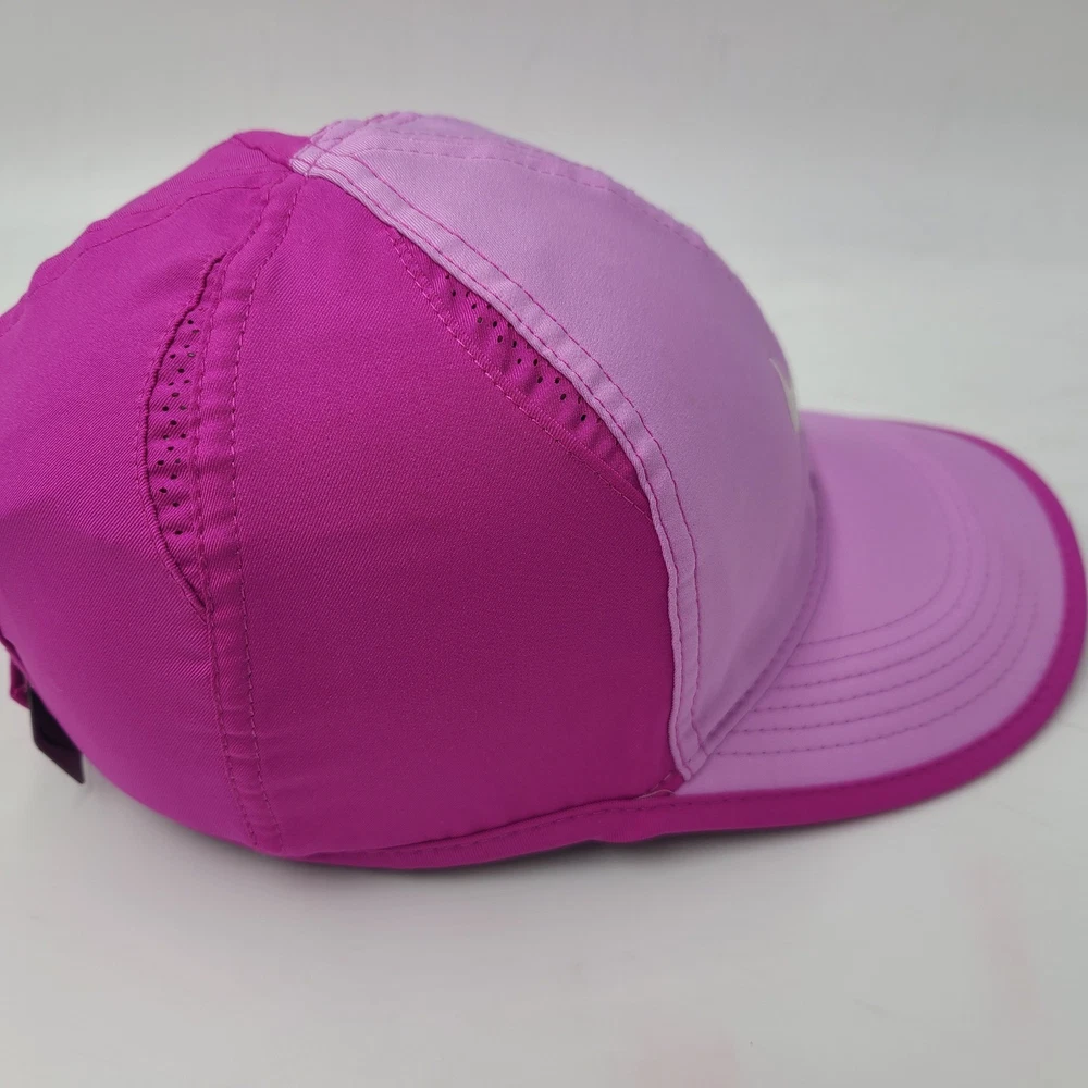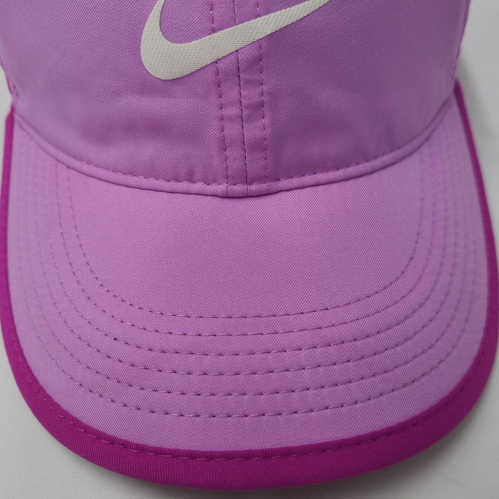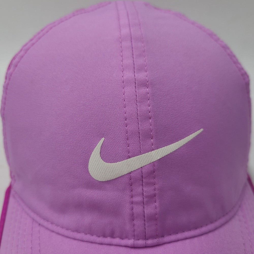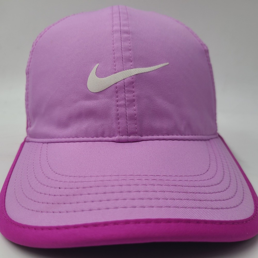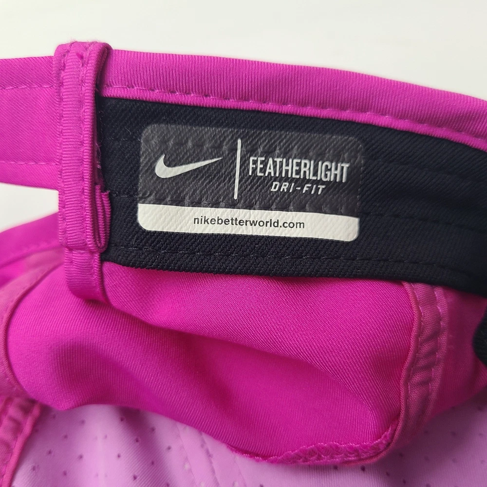 Has some stains/discoloration on the brim and front as seen in photos. Women Nike Hat Adjustable Pink Featherlight Dri-Fit Running Golf Outdoors Hike. Condition: Please review all photos for exact condition, wear, and details. Any visible flaws will be shown clearly in the photos. All hats are stored in a smoke-free environment. Shipping: All hats are shipped in a box. Every order is shipped out within 1 business day with a tracking number. Cleanliness: All hats are cleaned and sanitized to meet site standards prior to taking photos. Please message me if you have any questions or concerns. I answer most messages very quickly. Thank you!