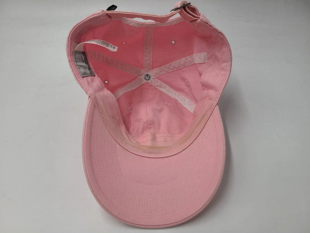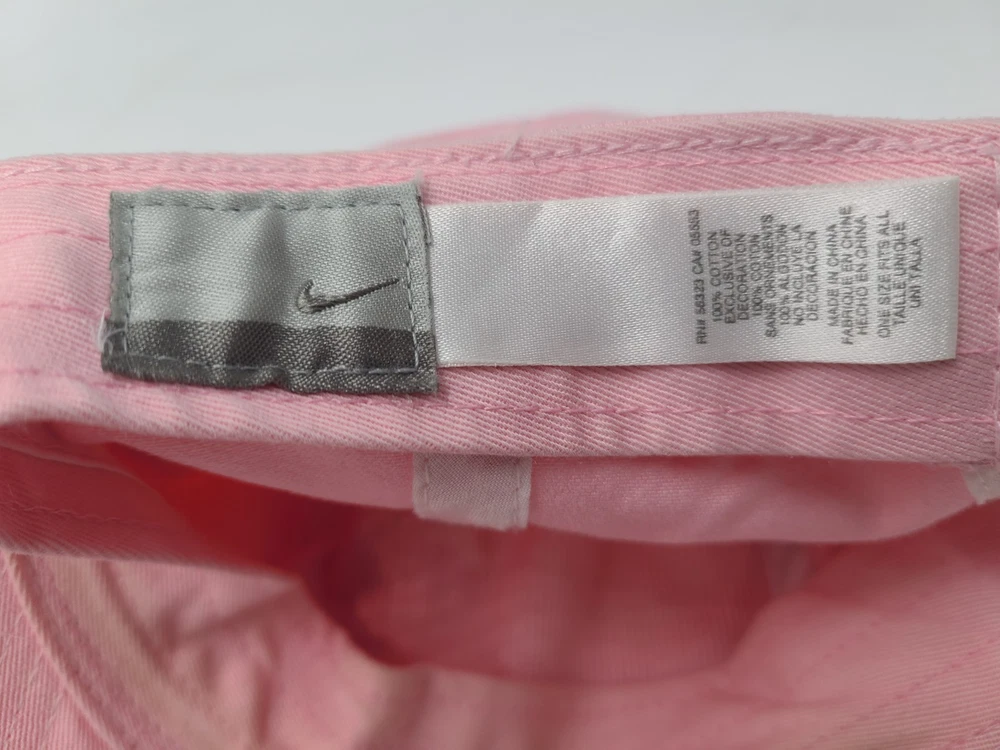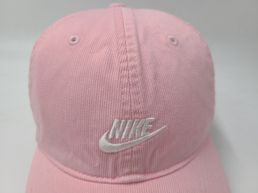 The tag says one size fits all, but it seems best suited for smaller sized heads. Also has some stains/discoloration on the brim and underneath the brim as seen in photos. Women Nike Strapback Adjustable (Fits Small) Hat Cap Cotton Swoosh Pink White. EACH ADDITIONAL HAT PURCHASED IS ONLY $1 ADDED SHIPPING!