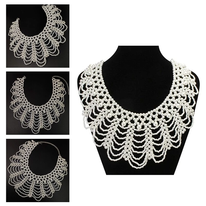 Women Pearl Beaded Bib Choker Necklace Flower Jewelry Fake Collar Dicky Description: Features: and high Made from high artificial pearl and alloy; beautiful, firm and durable. decorative collar for sweater, for t shirt, blouse, dress, for and more. Sexy, unique, for noble and elegant. Suitable to wear on all occasions, such as party, wedding, gathering, size and suit for all ages with adjustment chain. Easy to pair with dress or usual clothes modeling a exquisite outfit. This stylish fake collar can also be a great present Day, Christmas, New Year, Mother's Day, Birthday, 1 fake collar only, other accessories in the picture are not included! Specification: Metal Alloy Optional Color: White, Black Chain Length: app. 32cm+12cm(12.60in+4.72in) Quantity: 1 pc Note: 1cm=10mm=0.39inch No retail package. Please allow 1-3mm error due to manual measurement. pls make sure you do not mind before you bid. Due to the difference between different monitors, the picture may not reflect the actual color of the item. Thank you! Package includes: 1 x Fake Collar(other accessories in the picture is not included.)
