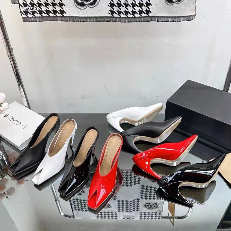 Women Peep Toe Slippers Summer Fashion High Heel Slip On Party Sandals Shoes