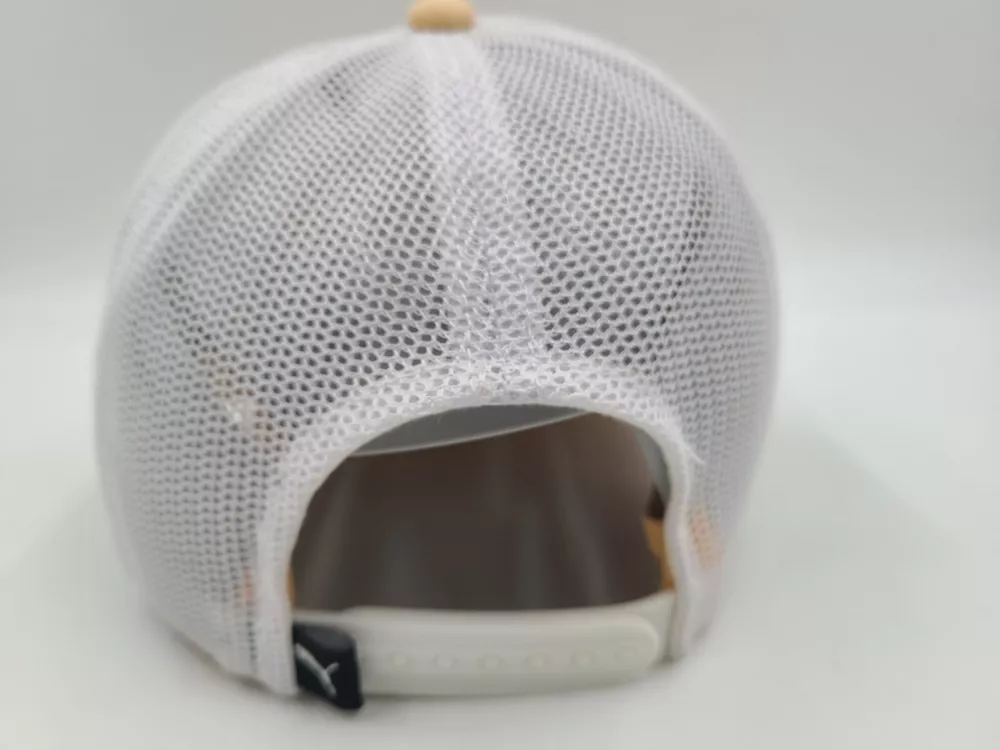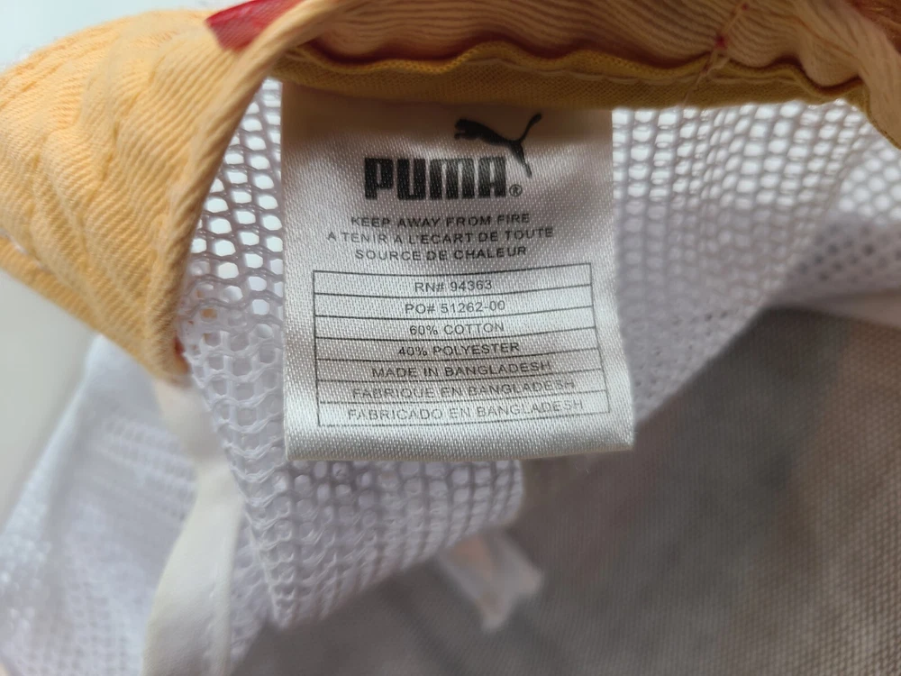 Has some stains on the front as seen in photos. Women Puma Mesh Trucker Snapback Hat Cap Baseball Soccer Outdoors Orange White. EACH ADDITIONAL HAT PURCHASED IS ONLY $1 ADDED SHIPPING!
