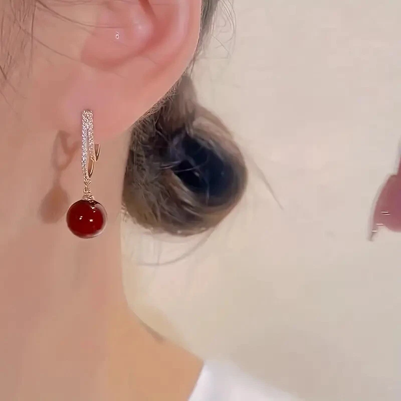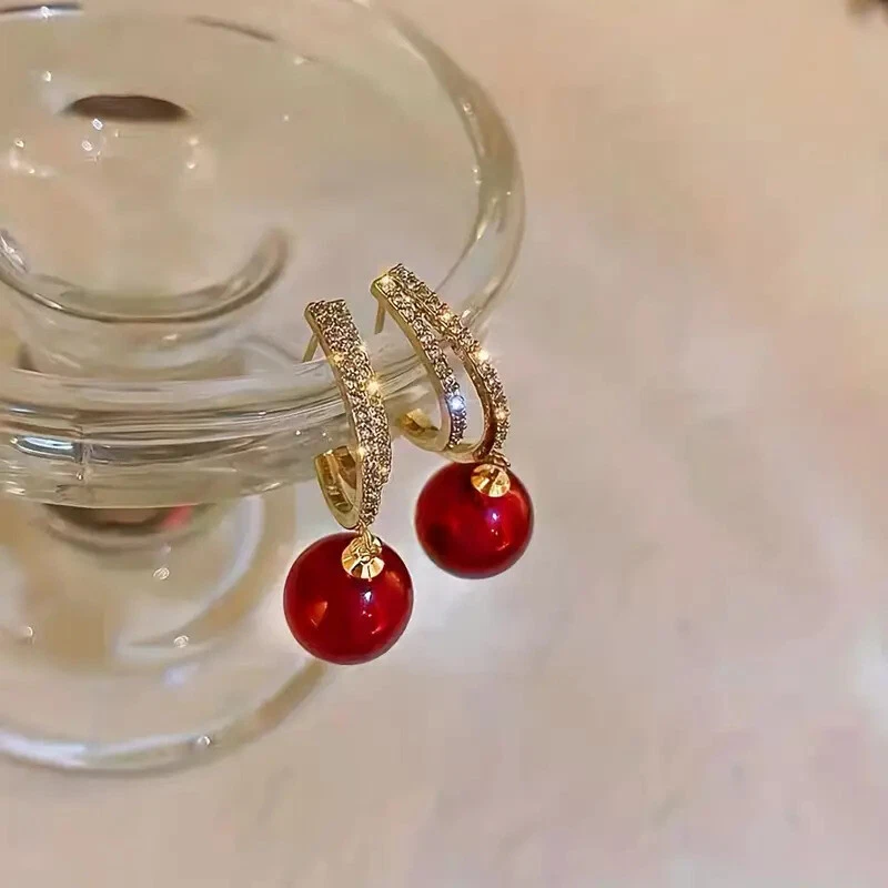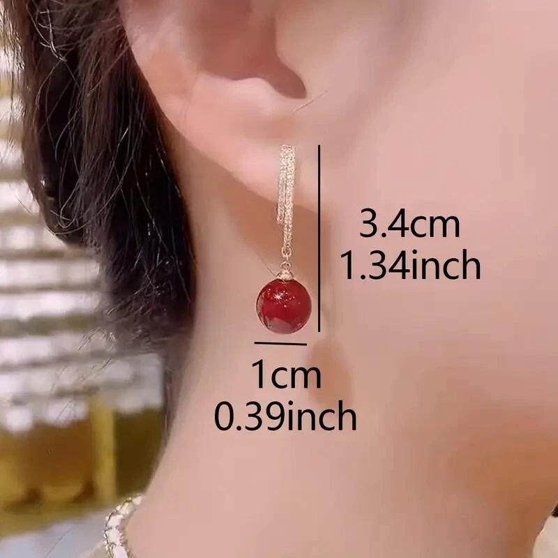 Women Red Jewelry Pendant Shiny Rhinestone Earrings Retro Elegant Female Gift
