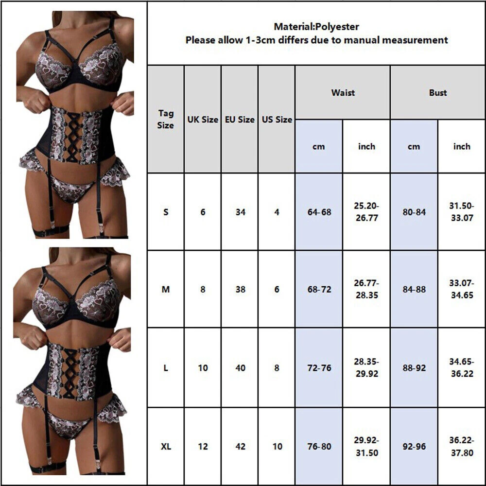 Description: 100% Brand New and high quality. Features: Material: Polyester Style: Sexy Color: Black Size: S,M,L,XL,XXL Sleeve Type: Strappy Sleeve Sleeve Length: Sleeveless Pattern: Floral Neckline: V-Neck Package Includes: 1 x Sexy Lingerie Notice: 1. Please allow 2-3% error due to manual measurement. Please make sure you do not mind before you bid. 2. The colors may have different as the difference display, please understand. On Dec 17, 2024 at 13:06:32 PST, seller added the following information: