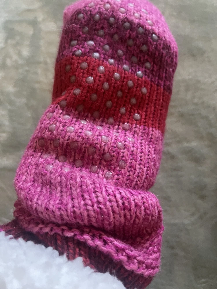 Stay cozy at home with these NWOT Women Sherpa Fleece Thermal Fuzzy Warm House Slipper Socks. Perfect for walking and lounging around the house, these mid-calf socks feature cushioned, lightweight, and non-slip designs that provide thermal warmth. The knit socks are machine washable and come in a vibrant red/pink colors with a classic and colorful theme, making them a perfect for cold weather. Never worn. The socks are made of high-quality fleece/knit material and have a one-size medium fit that is suitable for all women. They also have foot grips that ensure ultimate comfort and breathability. Whether you're looking for a perfect gift or treating yourself, these bed/slipper socks are a must-have for the winter, fall, and spring seasons. Ships Fast! Thanks for Looking!
