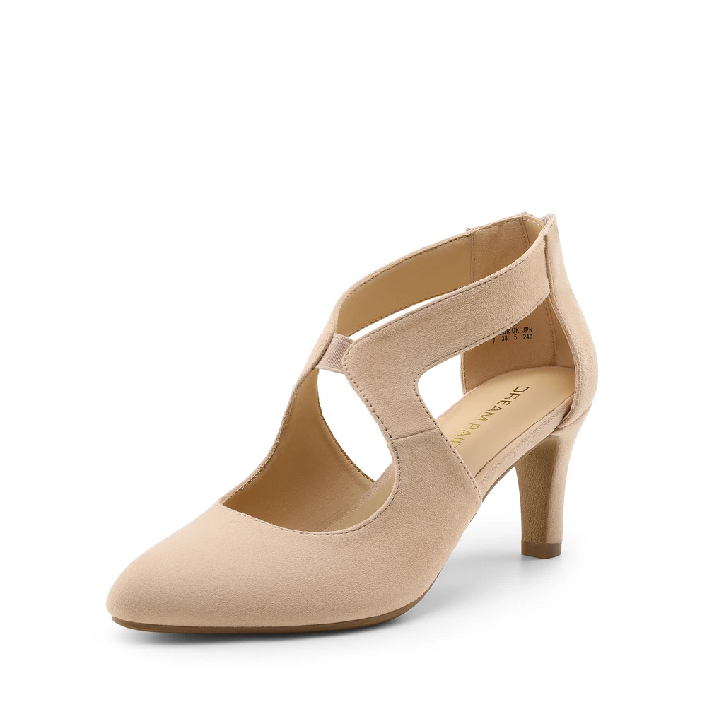 Brand: Dream Pairs Upper Material: Faux Leather/Faux Suede 应用PLG: 应用 US Shoe Size: 6-11 Type: Heel Department: Women Features: Comfort, Lightweight, Non-Slip Toe Shape: Pointed Toe Outsole Material: Thermoplastic Elastomers Occasion: Formal, Wedding, Party/Cocktail, Christening Closure: Zip Style: Pump Heel Style: Kitten Heel Height: Mid (2-2.9 in) Season: Fall, Spring, Summer, Winter Shoe Width: Standard
