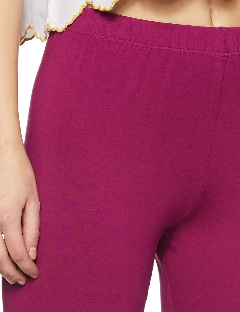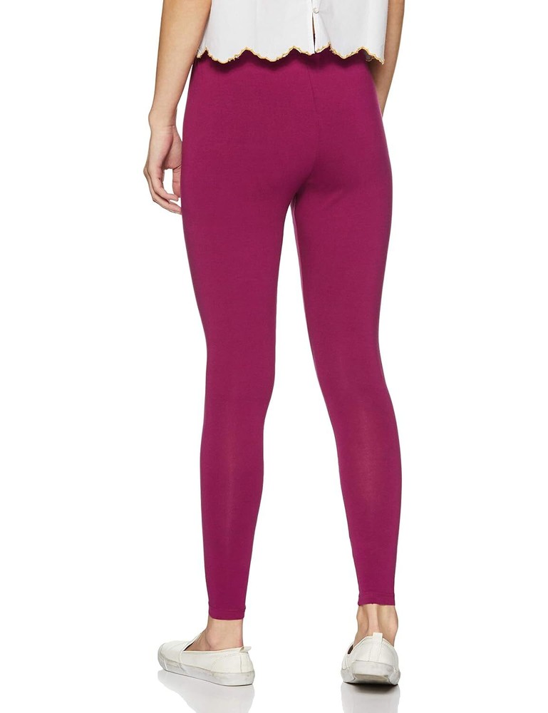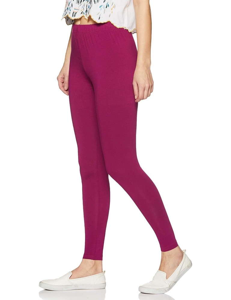 Women Solid Premium Cotton Ankle Length Legging Size L Casual Wear Mouve
