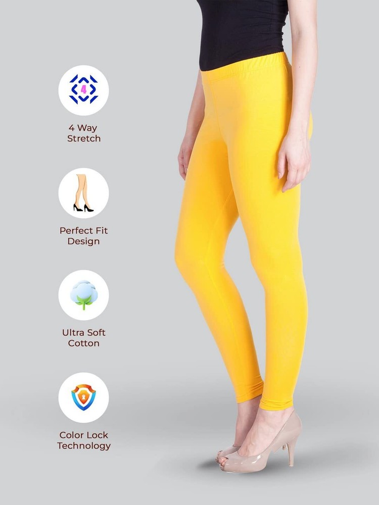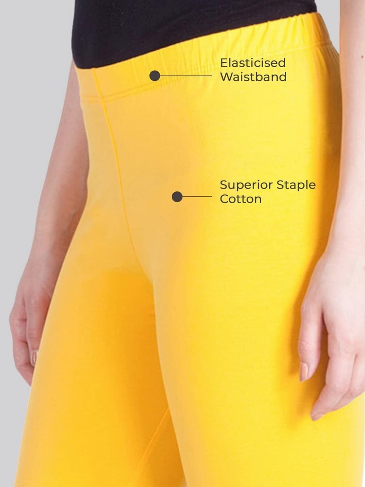 Women Solid Premium Cotton Ankle Length Legging Size L Casual Wear Yellow