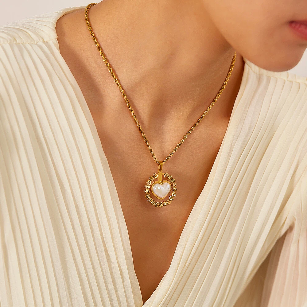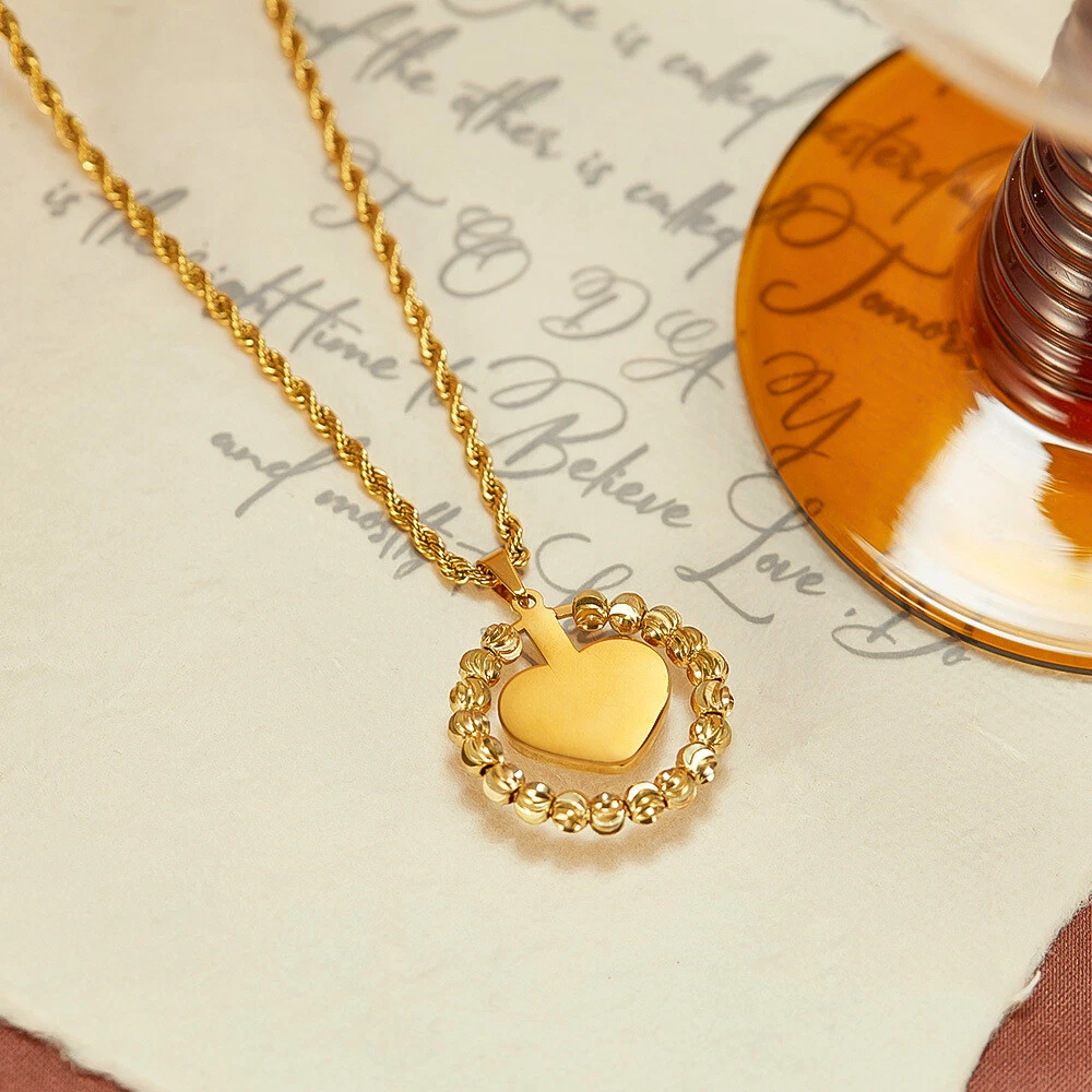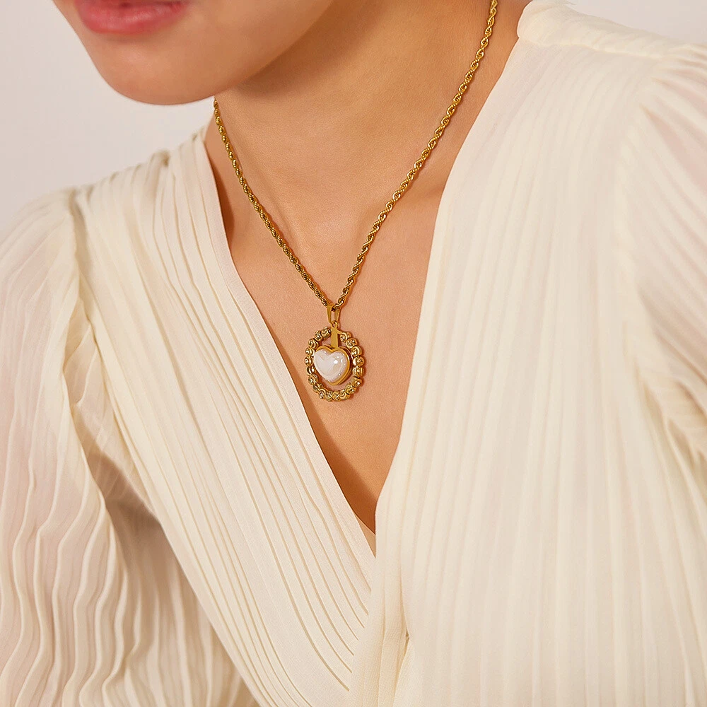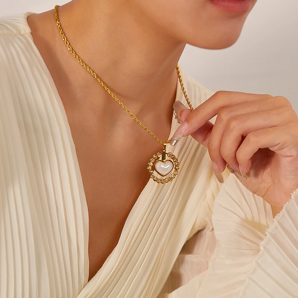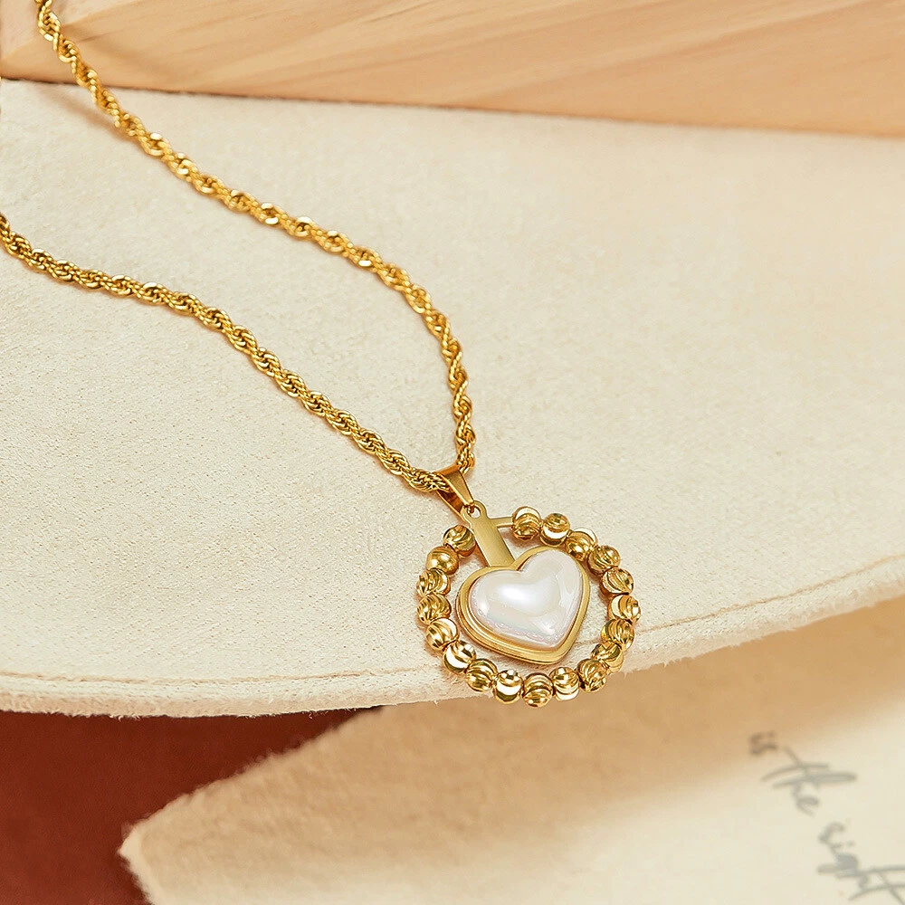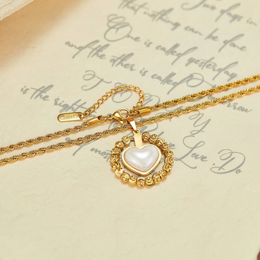 Women Stone Heart Necklace Gold Stainless Steel Pendant Choker Rope Chain Gift