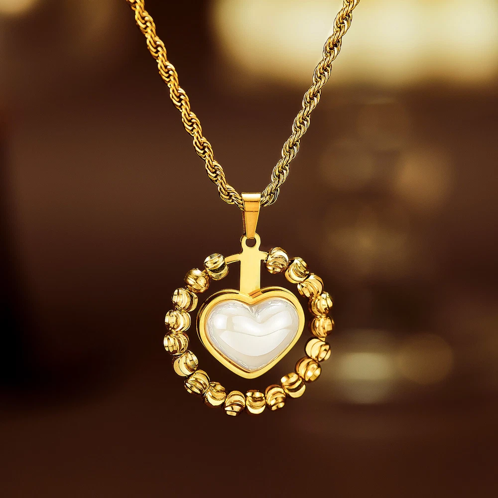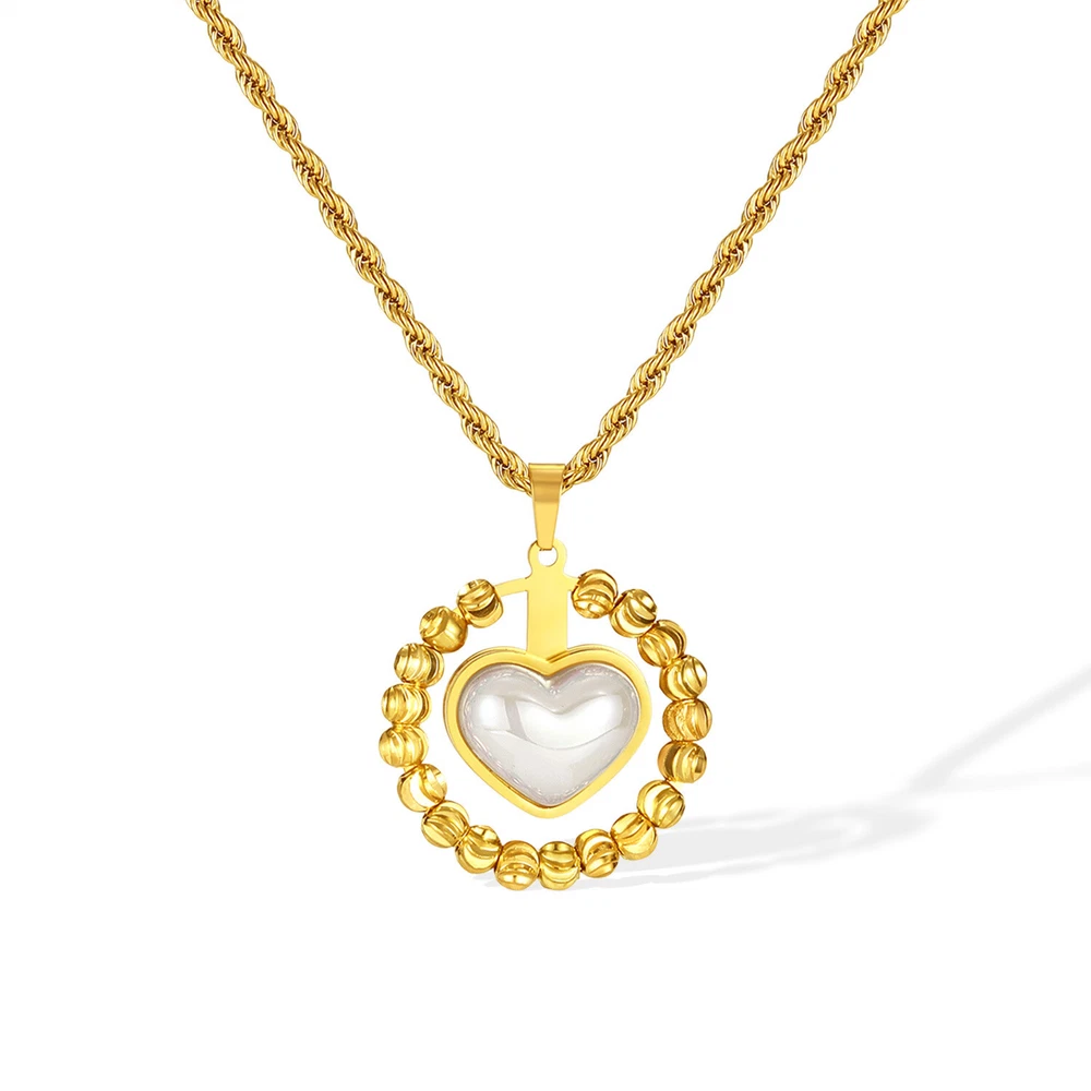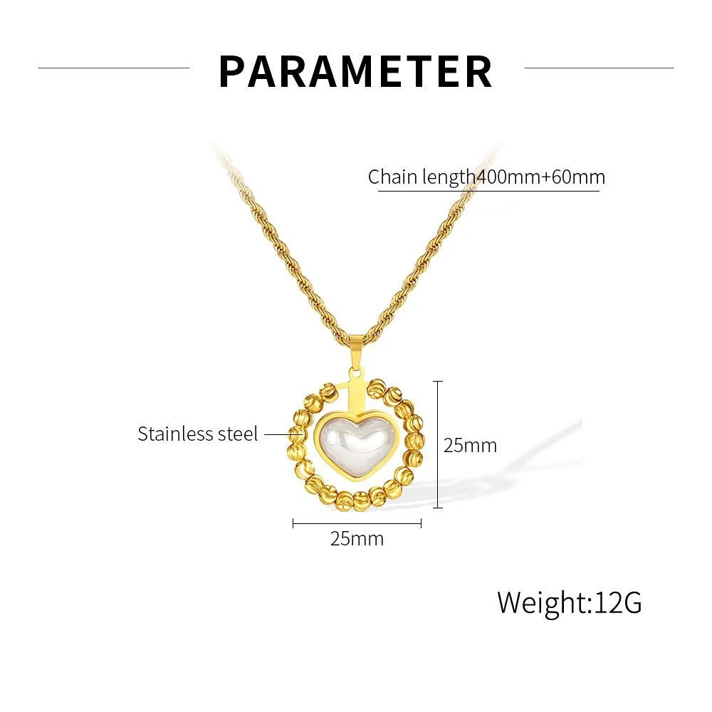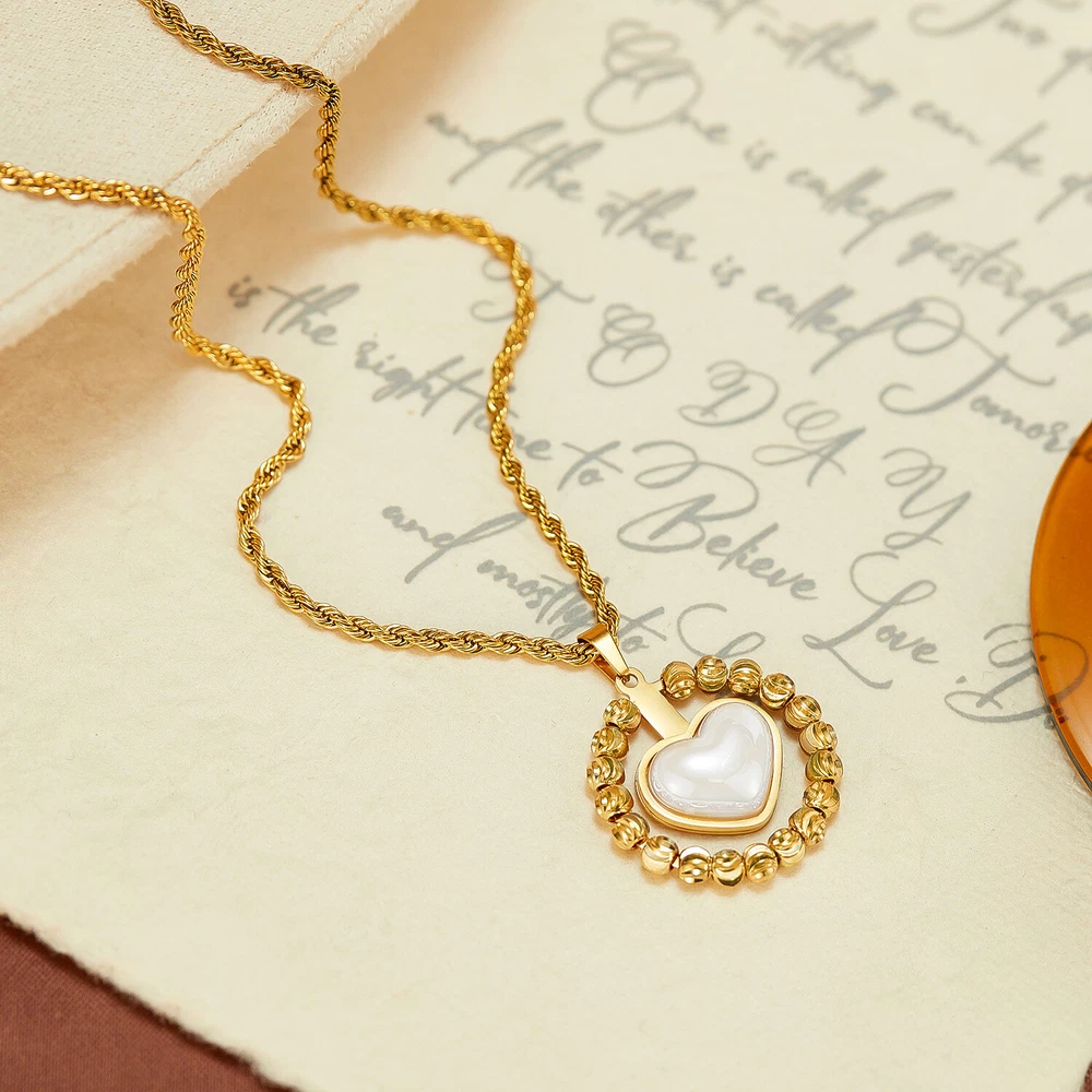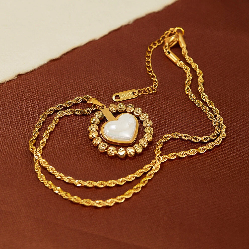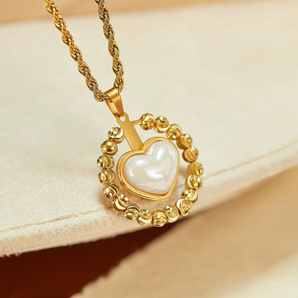 Women Stone Heart Necklace Gold Stainless Steel Pendant Choker Rope Chain Gift