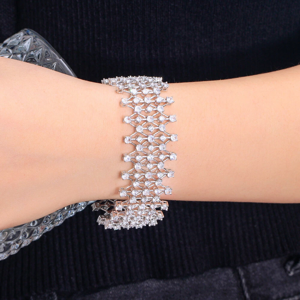 Women Stylish Silver Plated Round Cubic Zirconia Wide Bangle Bracelet for Bridal There’s an old saying that: Jewelry is woman’s best friend. And one appropriate luxury jewelry helps to spice up your charm and beauty. And here’s the reason why you choose us: ★ We adopts high-grade Cubic Zirconia, which displays pure and fascinating color; ★ All our items are Elaborate, Gold Plated (white gold plated/yellow gold plated/black gold plated), by which the texture is smooth and with fancy look, and will be appropriate for so many occasions; ★ Our items are with Exquisite Design, which shows your excellent taste, and could catch people’s attention easily. ★ Ideal gift for mother, wife, girlfriend, daughters, brides, bridesmaids, ect. Specification Type: Bangle & Bracelet Stone Material: Cubic Zirconia Base Metal Material: Brass Metal Material: Silver Plated Shape: Crossed Stripes Color: White Suitable Occasion: Daily, Holidays, Party, Engagement, Wedding, Anniversary, Valentine’s Day, Carnival, Performance, ect. Package Includes 1 Piece of CZ Bracelet Please note: *Please bear in mind that there might be 1~2cm difference due to manual measurement. *Our digital images are as accurate as possible. However, different monitors may cause colors to vary slightly. *We offer after-sale service, if there is any item problem, please feel free to contact us via eBay message first, your kind understanding is much appreciated. About Us Payment Shipping Returns Contact us About Us Topjewel33 is a newly-established online store which dedicates to provide excellent luxury jewelry products, such as earrings, rings, necklaces, bracelets, brooches, hair accessories, and high grade jewelry sets. We target worldwide market, and we strive for offering you unbeatable low price and satisfied customer service. Payment We accept PayPal payment only. Payment must be received within 7 days from the date of purchase. Shipping We do hope all our customers could receive the order asap, so normally, the order will be sent out within 2 working days. And as the delivery is handled by the third party, sorry that we could not guarantee which date you could receive the package. And sometimes the delivery might be a little bit delay, especially in high volume or holiday seasons. However, please don’t worry and feel free to contact us via eBay message, and we will do our best to help. And we sincerely apologize for any inconvenience may cause. Sometimes custom tax might be required, and we are afraid that it will be covered by the buyers, thank you for kind understanding. Returns We provide 30 days money back return policy. And if you have any problem with the item, please make sure the item is in the original package and feel free to contact us via eBay message first, thank you for kind understanding and cooperation. Contact us We offer customer service, if you have any problem with the item before/during/after the purchase, please feel free to contact us via eBay message, and we will get back to you asap. Thank you for your kind patience.