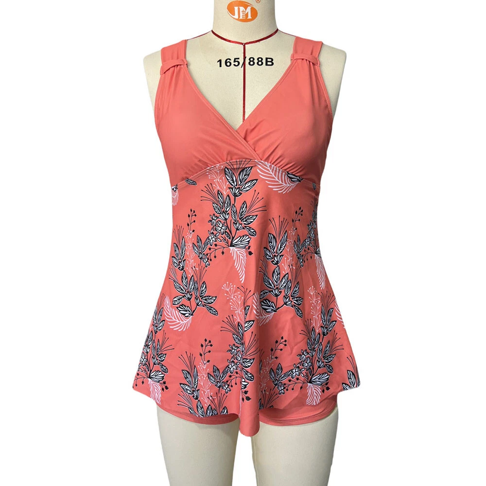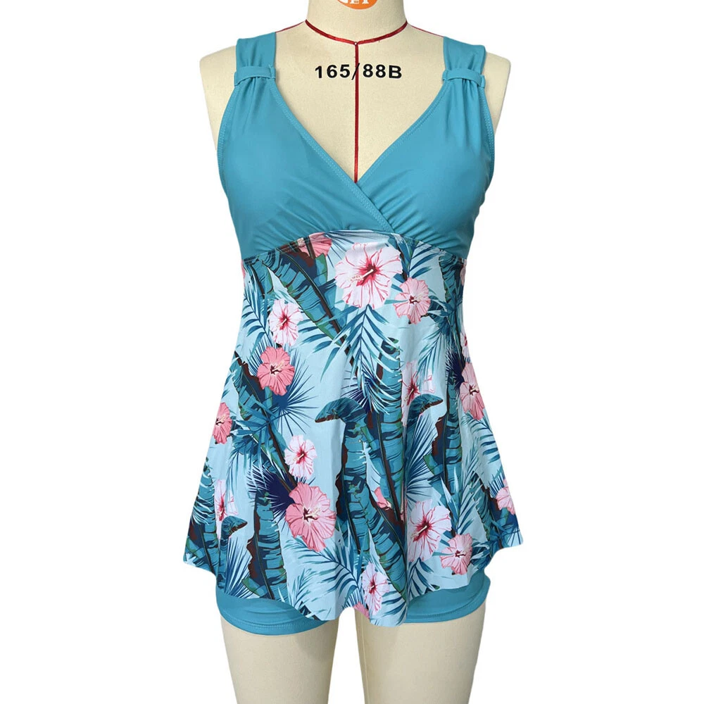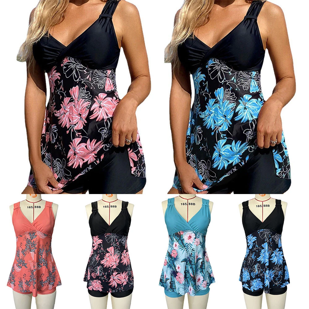 Women Swimsuit Dress Shorts Tankini Set Printed Pattern Swim Beachwear Summ