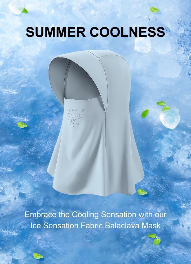 Stay Protected, Stay Free Engineered for adventurers who refuse to compromise, our UPF 50+ Sun Protection Balaclava is your ultimate shield against harsh UV rays, wind, and sweat. Crafted with high-performance ice silk fabric, it actively pulls moisture away from your skin and accelerates evaporation, ensuring you stay cool and dry even on the toughest trails. The strategic mesh panelsboost airflow around your nose and ears, while the4-way stretch technology provides a seamless fit that moves with you—no slipping, no chafing, just pure freedom. Why You’ll Love It: UPF 50+ Certified Defense: Blocks 98% of UV radiation, surpassing standard sun protection to safeguard sensitive areas like your ears and neck—no more missed spots with sunscreen . Featherlight & Packable: Weighing less than a smartphone, it folds effortlessly into your pocket, ready for spontaneous adventures from dawn to dusk. Versatile All-Season Use: Transition seamlessly from summer hikes to winter runs. The extended neck coverage and breathable design adapt to any weather, while the anti-fog nose bridge keeps glasses clear during high-intensity activities. Perfect For: Outdoor Enthusiasts: Hiking, trail running, cycling, or skiing—stay protected without sacrificing mobility. Daily Commuters: Shield against pollution and sun during bike rides or walks. Travel-Ready: Compact and odor-resistant, it’s a must-have for globetrotters exploring sunny destinations. Care Instructions: Machine wash cold. Avoid bleach. Air dry. Retains UPF 50+ efficacy for 30+ washes. UPF 50+ Full-Coverage Sun Protection – Blocks 98% of harmful UVA/UVB rays to shield your face, neck, and head from sunburn and long-term skin damage, perfect for hiking, cycling, and outdoor adventures. Moisture-Wicking & Quick-Dry Fabric – Advanced ice silk material absorbs sweat instantly and dries rapidly, keeping you cool and dry even during intense workouts. Breathable 4-Way Stretch Design – Ultra-breathable mesh panels enhance airflow, while the elastic fabric stretches in all directions for a snug, irritation-free fit that adapts to any head shape. Unique Ponytail Hole Design - Our sunscreen balaclava face mask is designed with a unique ponytail hole, allowing you to put your hair through it for effective ventilation and breathability. No more feeling stuffy because of long hair! Ultralight & All-Day Comfort – Weighing less than 2 oz, this balaclava feels weightless and won’t restrict movement, making it ideal for running, climbing, or layering under helmets.