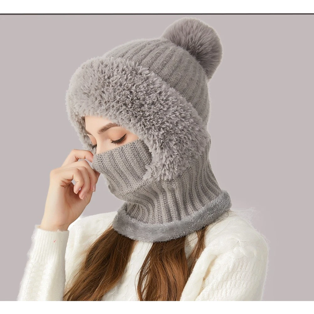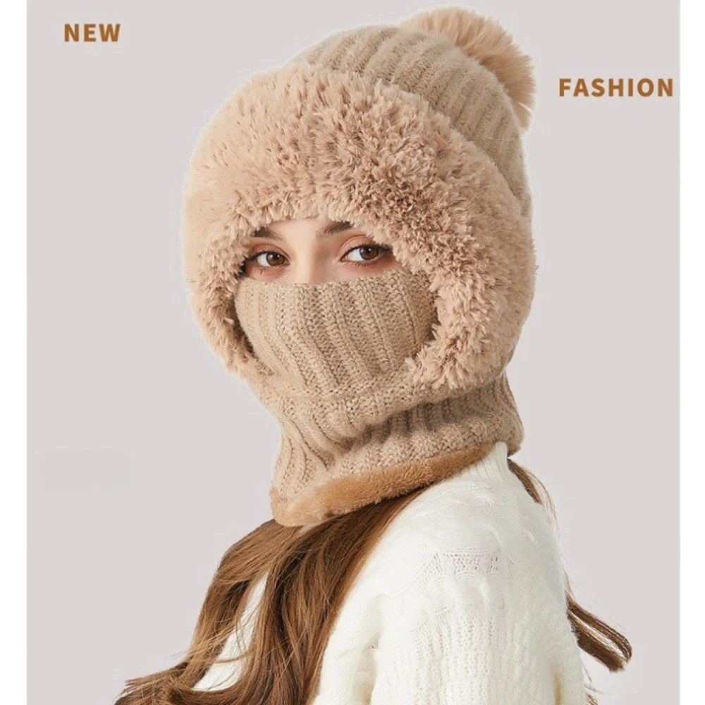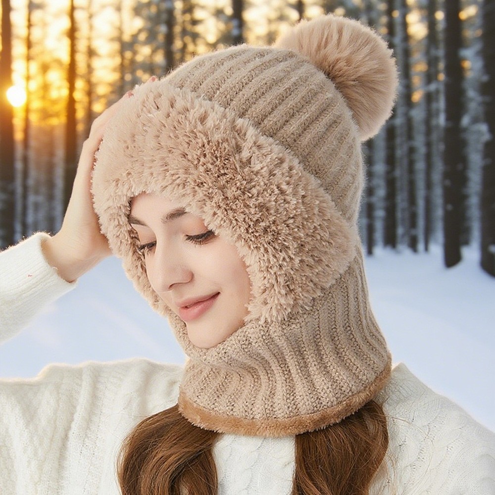 All-in-One Winter Warmth : This integrated set combines a beanie, balaclava, and neck cover into one piece, with fleece lining to trap heat, fully shielding your head, face, and neck from cold air and wind. Durable Knit & Fleece Construction : Crafted with sturdy knit fabric on the outside and soft fleece lining on the inside, it resists wear and tear while providing excellent windproof and cold-resistant performance. Convenient One-Piece Design : No need to assemble separate accessories—just put it on and go. It’s ideal for various winter scenarios, including outdoor walks, biking, commuting, and daily use. Comfortable & Breathable Wear : The fleece lining offers skin-friendly softness, and the knit material ensures proper breathability, so you stay cozy without feeling stuffy even after long hours of wear. Secure Fit & Fashionable Style : It fits most women’s head sizes snugly without slipping, and its chic knit design adds a trendy touch to your winter wardrobe.