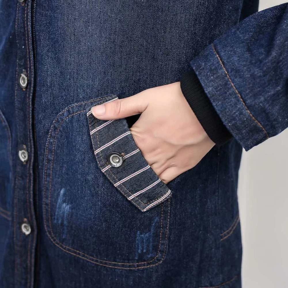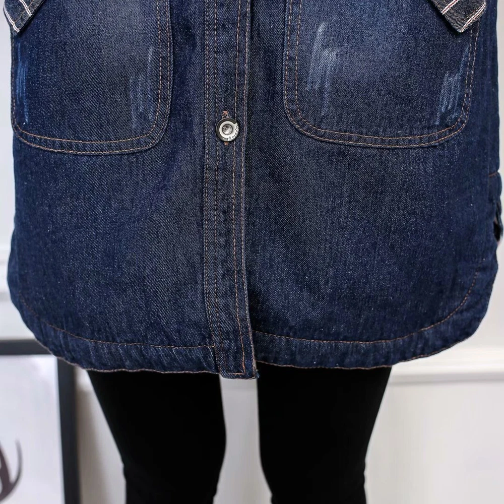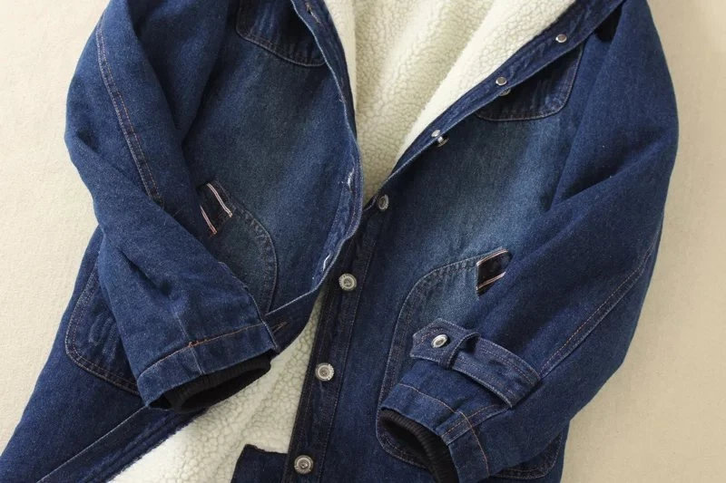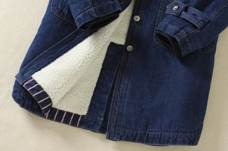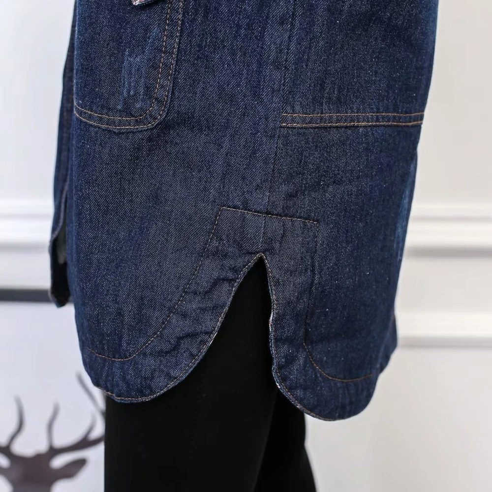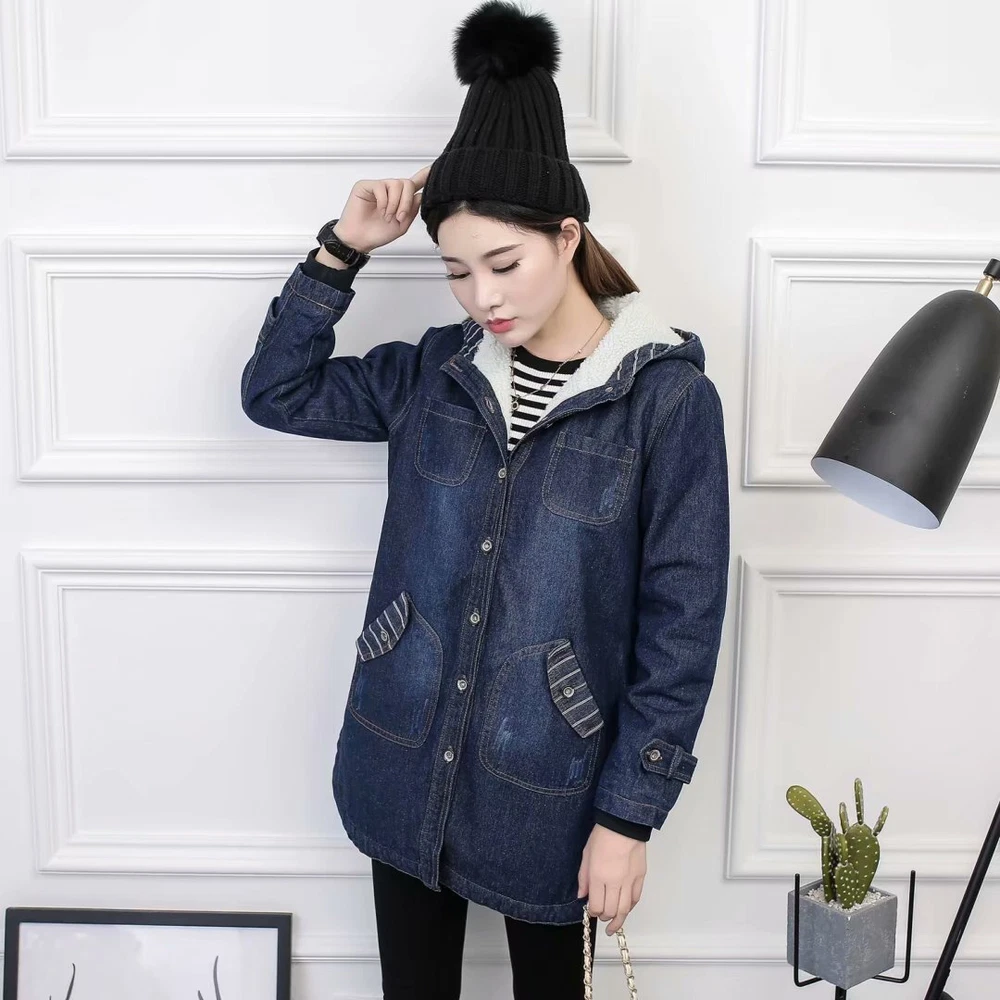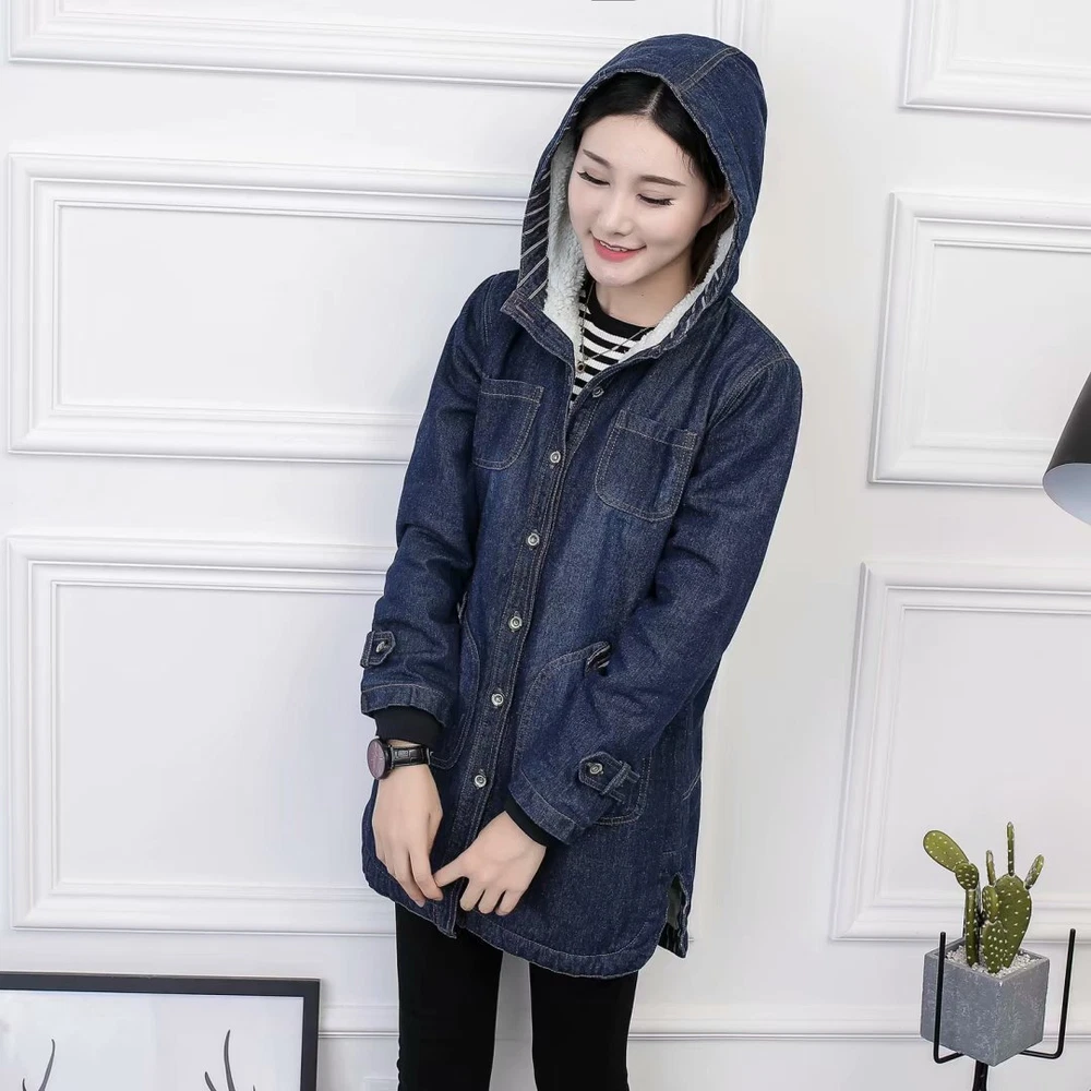 Women Winter Casual Long Jeans Jacket Fleece Lined Warm Denim Coat Hooded Parka