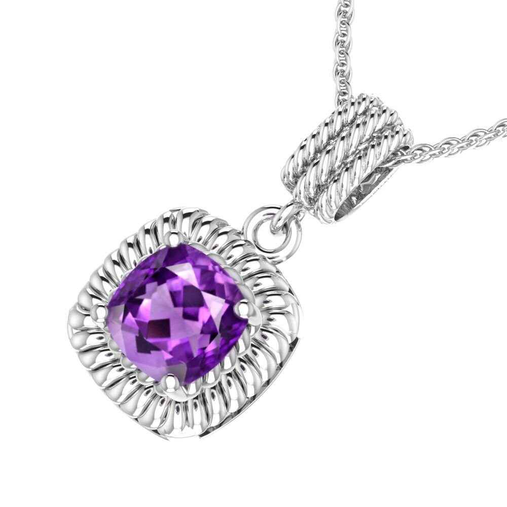 Let me tell you about the Womens 925 Sterling Silver Gemstone Halo Cushion 8mm Sparkling Genuine Hanging Pendant Classic Chain Birthstone Gift Fine Jewelry Necklace. This stunning necklace features a beautiful 1.7-carat Amethyst Purple gemstone, elegantly set in 925 sterling silver. The halo cushion design adds a touch of sparkle and sophistication to the pendant, making it a perfect accessory for any occasion. The necklace also comes with a classic chain and is 18 inches in length, ensuring a comfortable fit for anyone. Whether you're treating yourself or looking for a special gift, this necklace is sure to impress. Feature – Beautiful sparkle hanging 8mm cushion cut halo amethyst gemstone pendant; modern classic style crafted with top quality stones; created in 925 sterling silver with rhodium plating for high shine polish finish; elegant and sophisticated necklaces for ladies Style – Center accent stone designed in a delicate halo cushion with prong setting; February month birthstone for Aquarius Pisces horoscope star sign; flattering stunning jewels for women suitable for everyday daily wear; pure sterling silver brilliant accessories Gift – Solitaire hanging pendants as the perfect present for your wife mother mom fiancé daughter in law or gifts for her; fashion statement or surprise gift for bridal wedding party graduation prom birthday surprise engagement Occasion – Sophisticated premium stones for all special occasions; lightweight comfortable wear matches with bridesmaid dresses, wedding dress, gowns or a simple casual outfit; flawless gems featuring a beautiful color center stone; vintage novelty statement piece for jewelry collection Range – Purple Amethyst 1.7 Ct cushion gemstone heat treated natural stone creation; rhodium plated silver complimentary 18-inch rope loose necklace secures with lobster claw clasp; timeless beautiful pendant and necklaces; eye clean stone clarity
