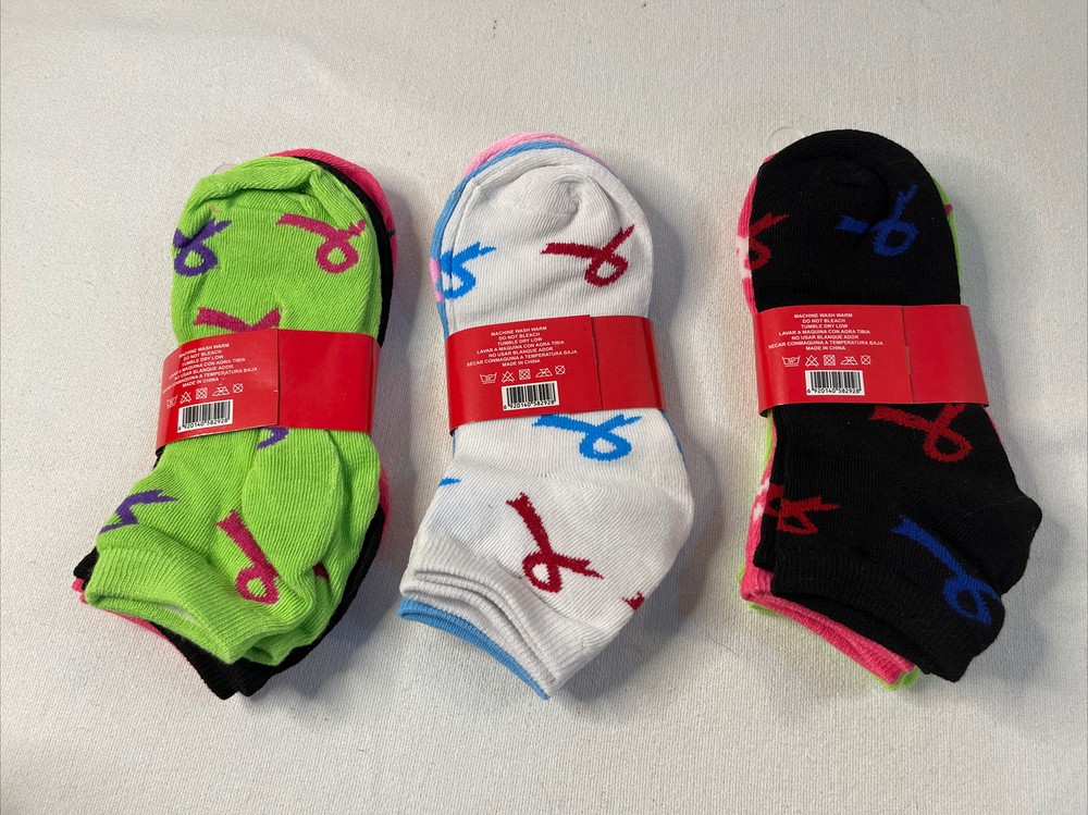 Womens Ankle Socks 9 Pair - Ribbon Print Assorted Colors.