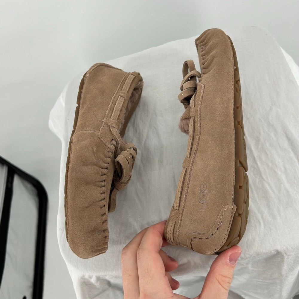 NWOT NWOB Women's Tan Pink 'Beachwood' UGG Dakota Bling Bow Shearling Lined Moccasins Slippers Sz 6M Size: USA Women's 6M These are NWOB/NWOT never worn. Cross listed on several platforms. Feel free to ask any questions!