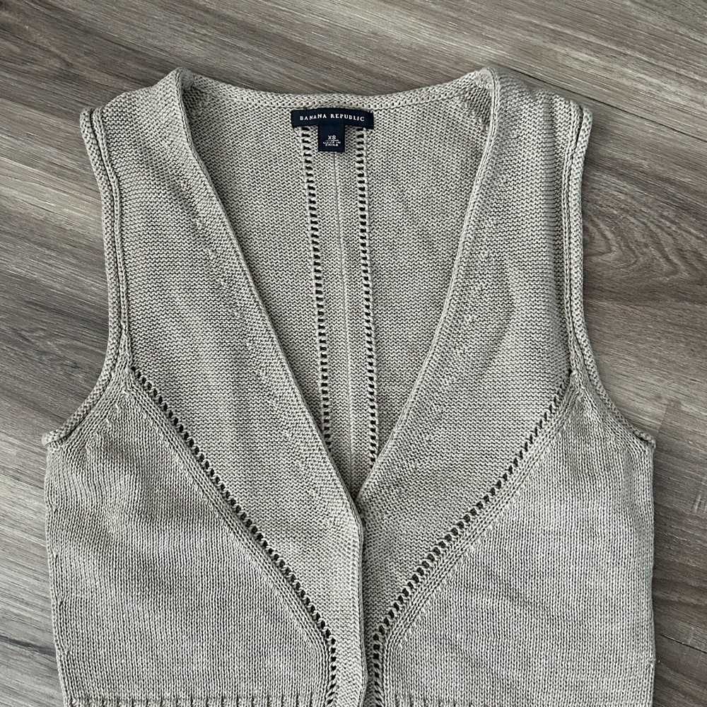 Banana Republic Beige Knit Vest Women size XSmall in great condition/ stretchy/ front snap buttons/ small front pockets Pit to pit 15” across Length from shoulder 23” Arm opening 9” Approximate measurements #30 All final sale Casual, dressy, coastal ,coastal cowgirl, western