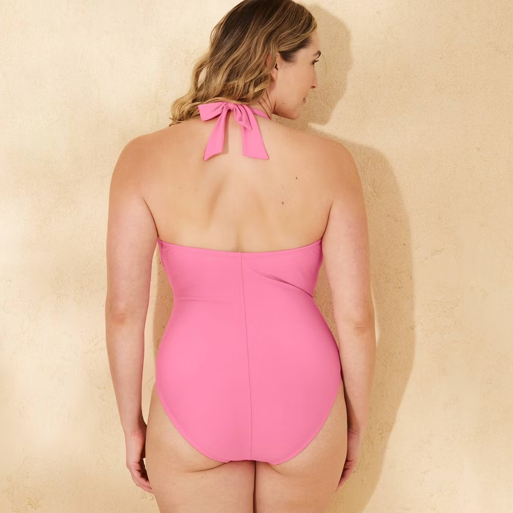 $ 40.66NWT Kona Sol Pucker Textured Square Neck 1 Piece Swimsuit Womans Size S 4-6