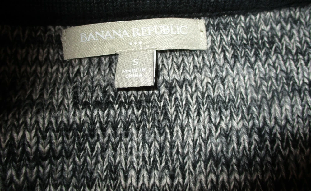 See my EBAY STORE at “SAMTPC53” to view 100’s more of my Women's SWEATERS!!! ( Combine Shipping: (on multiple items you pay full price on heaviest item first and then HALF PRICE shipping on ALL other items. Women's Full Zip Sweater. Brand: BANANA REPUBLIC. Description: women's 100% Cotton BANANA REPUBLIC full zip long sleeve sweater, 3 front pockets w/ zippers, see pics. Color: Black. Size: S (please see measurements). Measurements: 18" armpit to armpit, 23" shoulder to hem, 20" insleeve. Material: 100% Cotton. Condition: Very Good condition.