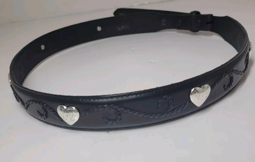 Womens Nocona Black Genuine Leather Belt Silver Studded Size 32