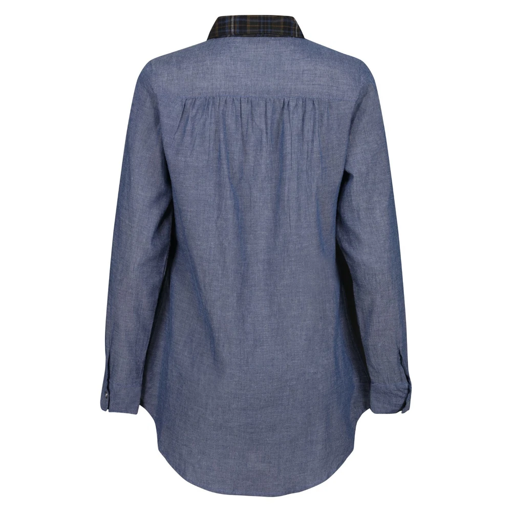 Blue chambray quarter button blouse from Anmol. This classic shirt style is a casualwear wardrobe staple. UK size 22. Brand new with tags. Features: Lightweight chambray fabric - 100% cotton. Contrasting plaid fabric to collar and placket. Two chest pockets. Back hem is longer than front. Moderately loose fitting. Machine washable. Approximate measurements: To fit bust - 46" Length from shoulder to hem - 32" Any questions, just ask. Click here to view my store.