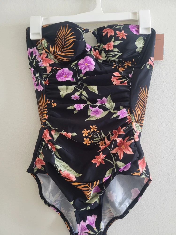 $ 14.52Women's Eyelet Bandeau High Leg Cheeky One Piece Swimsuit - Shade & Shore Blck M