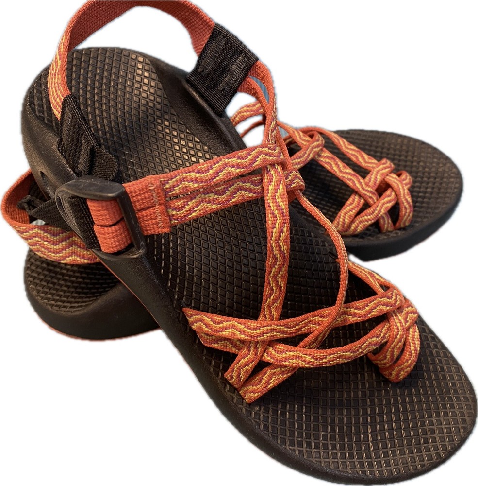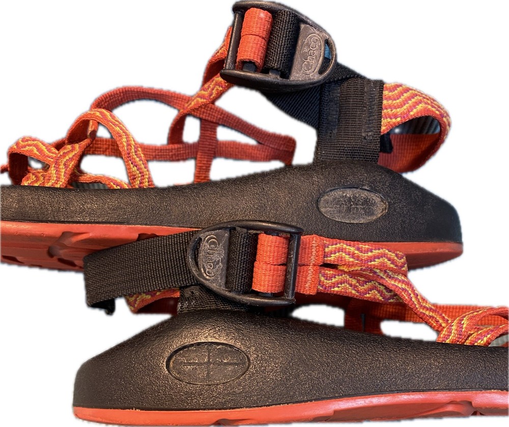 Step into summer with these stylish Chaco ZX/2 sandals in a vibrant multicolor geometric pattern. The adjustable ankle strap and flat heel make them perfect for both casual wear and activewear. These sandals feature a waterproof synthetic upper material and Chaco's signature logo accents. With a comfortable and breathable design, these sandals are ideal for the warm seasons of spring, summer, and fall. The Chaco ZX/2 CLOUD product line ensures durability and style in every step. Don't miss out on the opportunity to add these unique sandals to your shoe collection. See pictures of missing Chaco logo on side of each sandal.