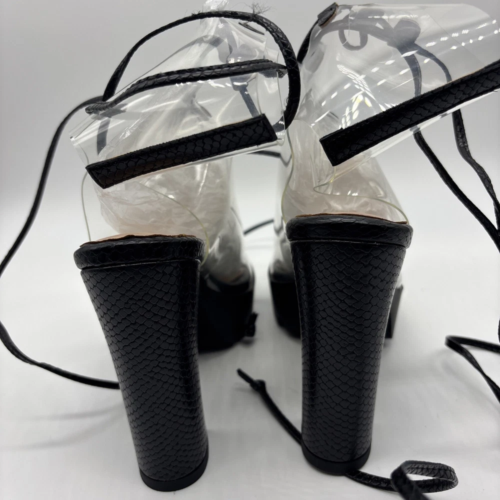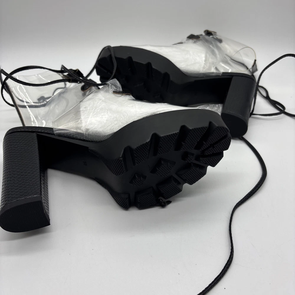 Color: Clear Plastic Heel Style: Block Closure: Lace Up Department: Women US Shoe Size: 7 Type: Heel Heel Height: High (3-3.9 in) EU Shoe Size: 38 Upper Material: PVC Brand: Unbranded Style: Platform Toe Shape: Open Toe