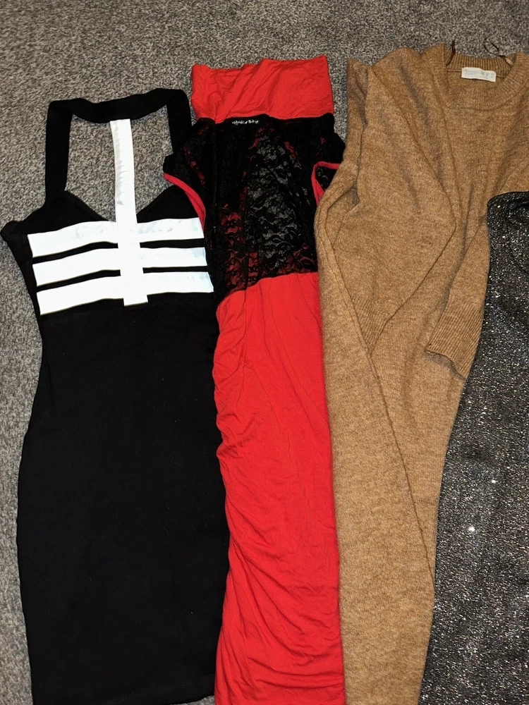 Closure: Mixed Season: Autumn, Spring, Summer, Winter Material: Cotton Blend, Polyester Blend Department: Women Sleeve Length: Mixed Size: 6 Number of Pieces: 4 Piece Colour: Multicoloured Type: Outfit/Set Pattern: Mixed Size Type: Regular Occasion: Activewear, Casual, Formal, Party/Cocktail, Travel, Workwear Fabric Type: Blended Fabric Brand: Primark Set Includes: Dress, Jumper Dress
