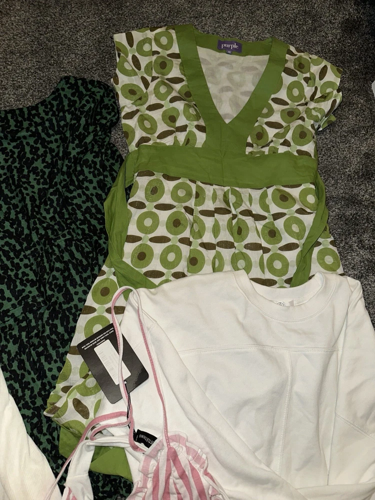 This women's clothing bundle includes a mix of brands and styles, perfect for any occasion. The set includes a variety of clothing, all in the size above. The clothing is made from a blend of fabrics, with a blended fabric type. The pieces are a variety of colours and are suitable for autumn, winter, summer, and spring, making them versatile for any season. The set is ideal for a variety of occasions, providing multiple options for any wardrobe. The outfit is from various brands. This set is perfect for women who want to feel confident and stylish. These are bargain bundles at a low price, more listed. NOTE These are used so please don’t expect perfection, many items listed with offers. Feel free to have a nosey. If you have any Q’s please don’t hesitate to get in touch Thank you